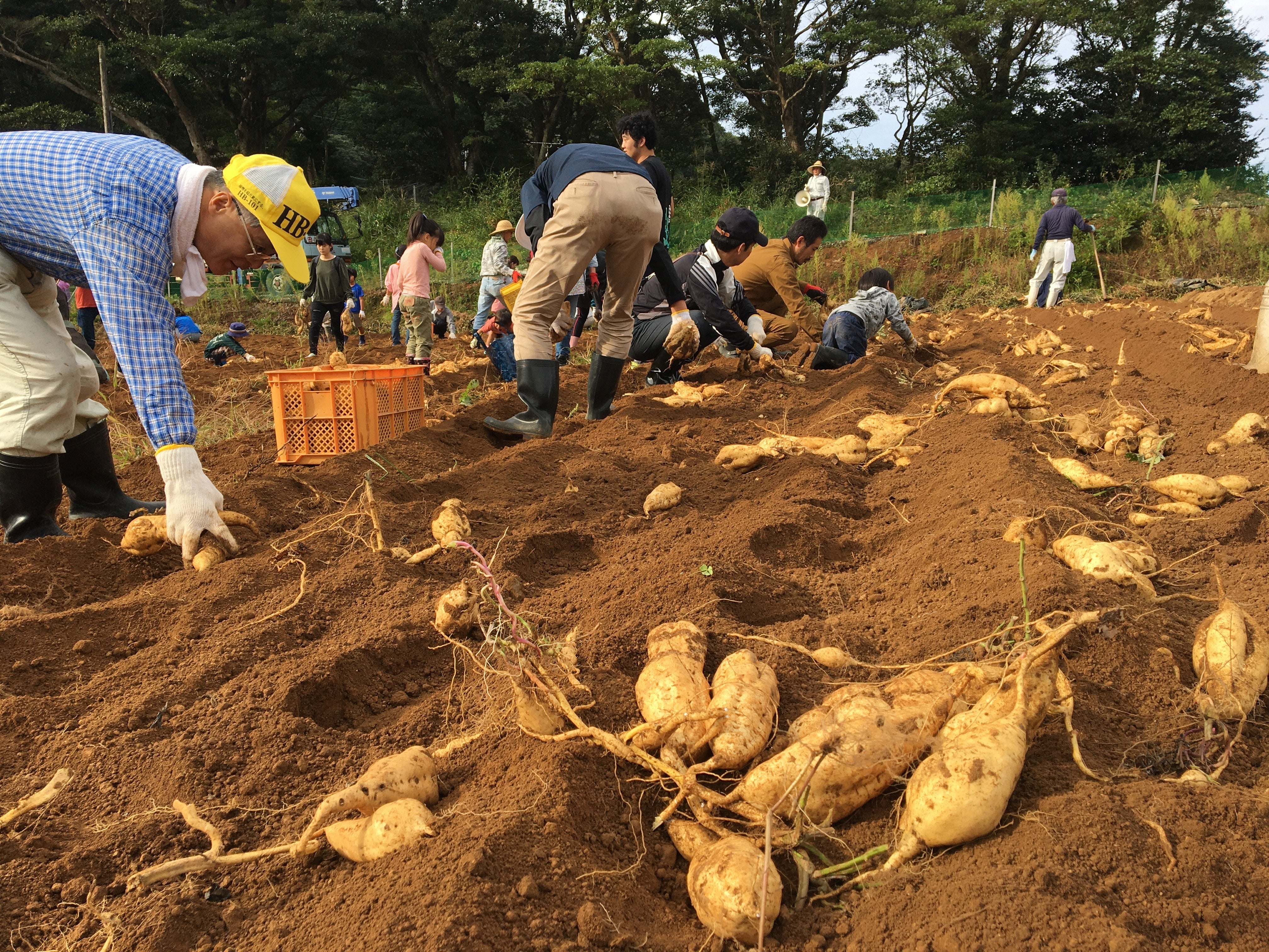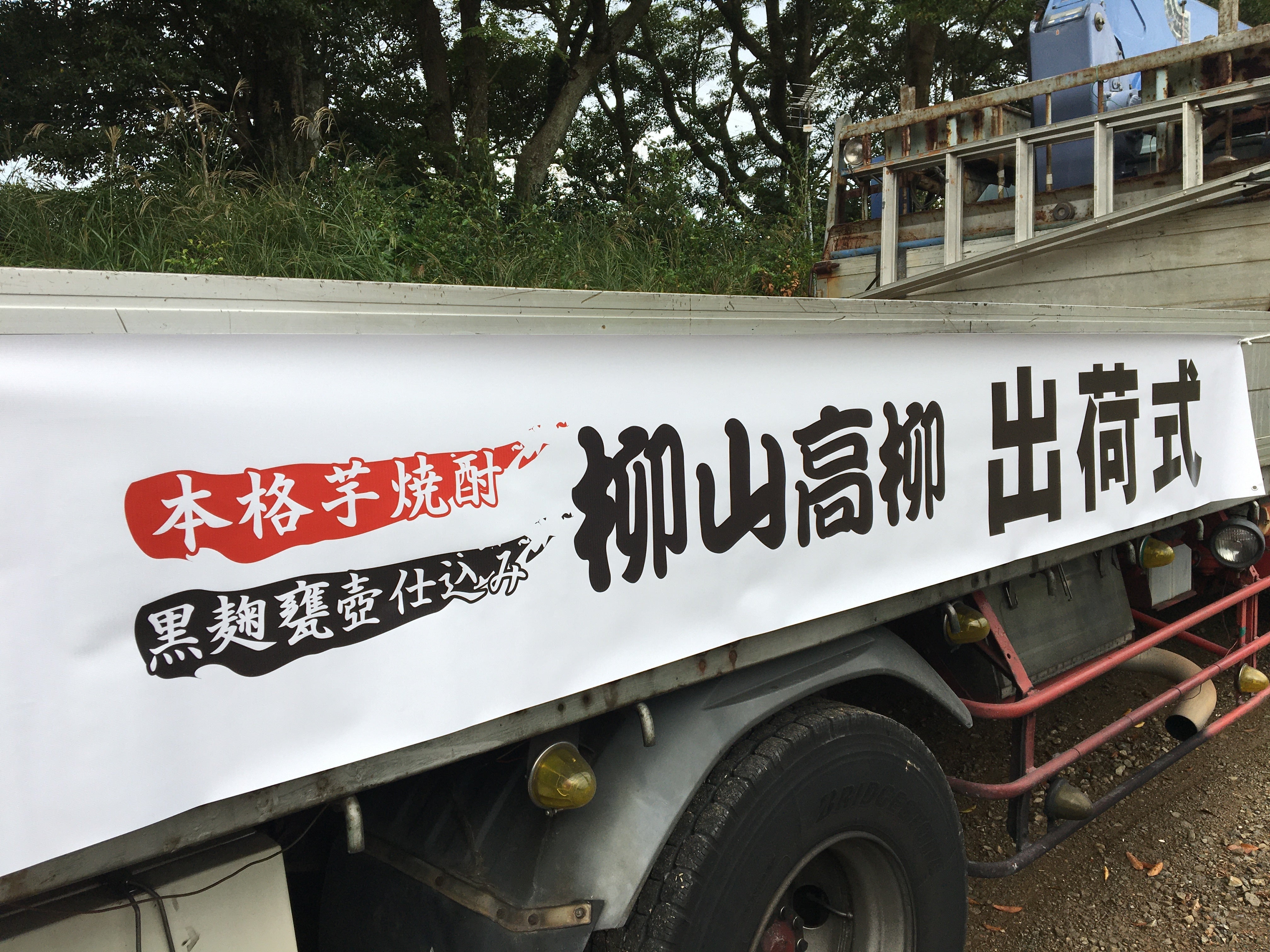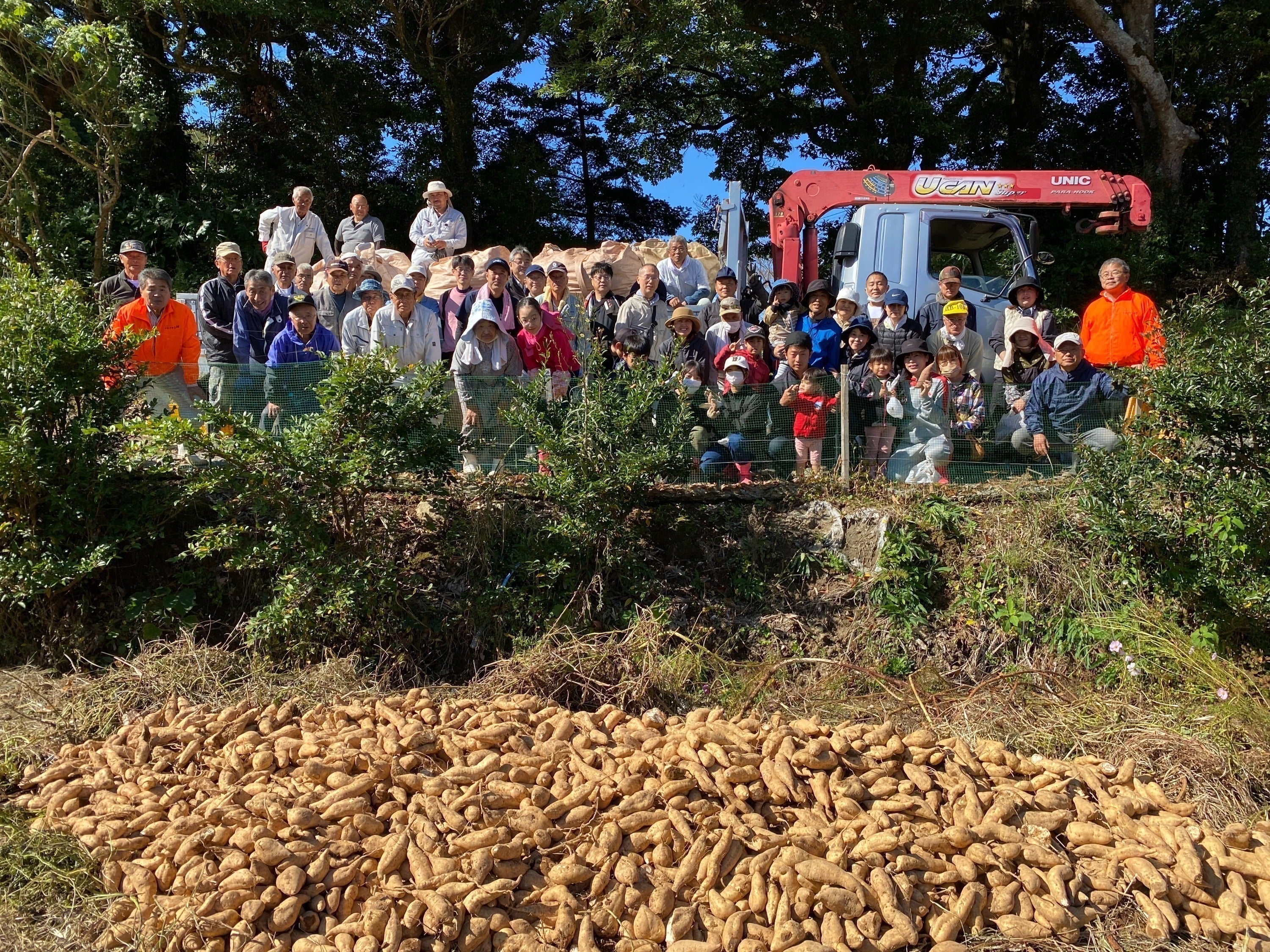 みんなで収穫した芋をお見送り。「美味しい焼酎になりますように~」