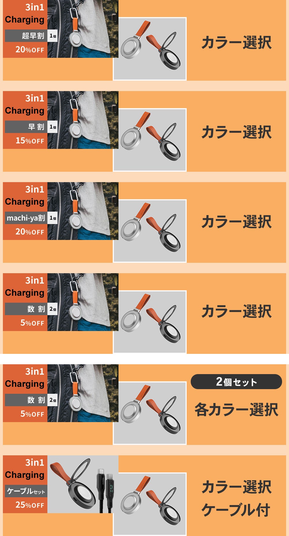 ※充電ケーブルは1本必要になります。バッテリーは搭載していません。