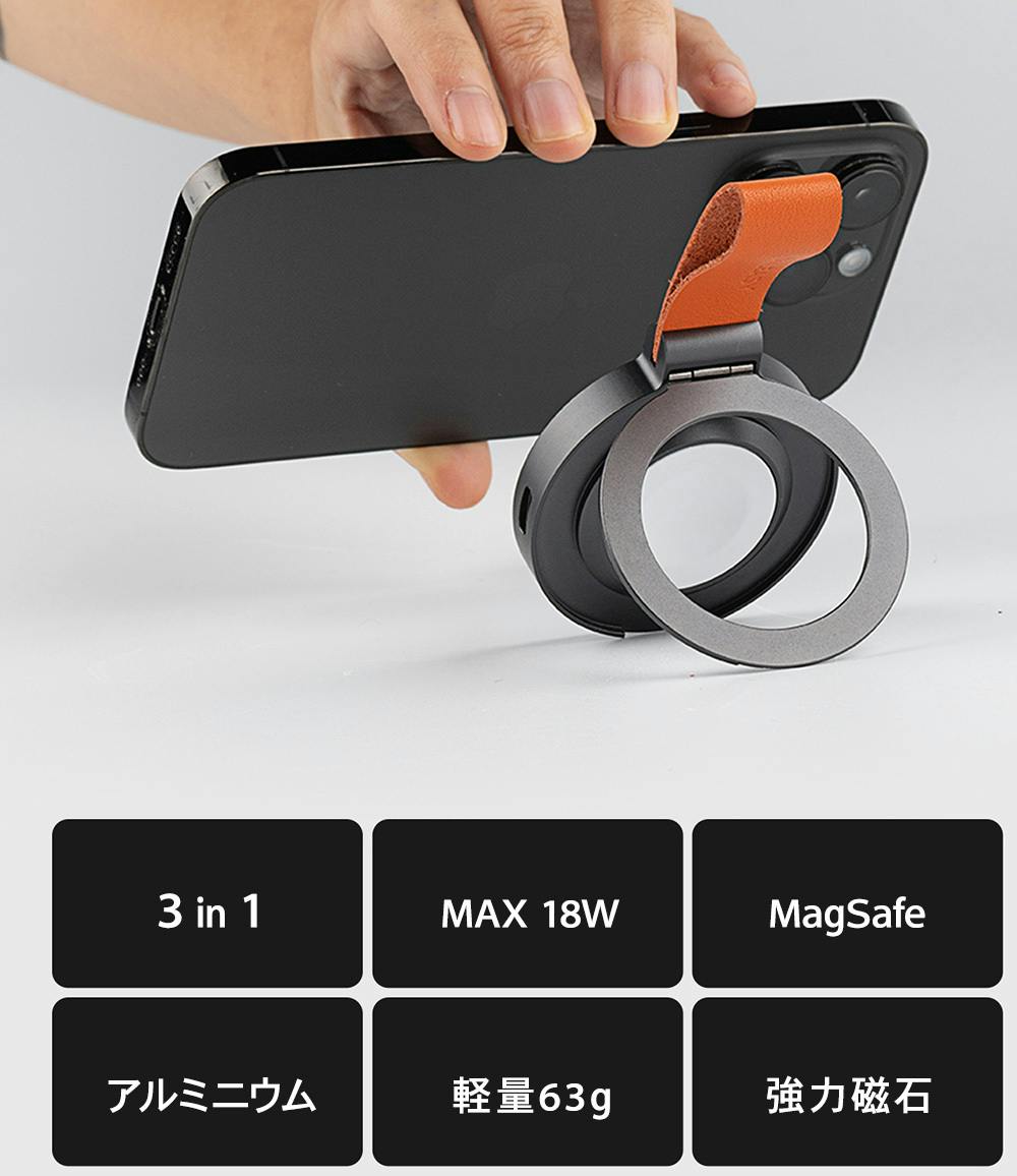 iPhone、Apple Watch、AirPods の3種をスマホリングで無線充電するワイヤレス充電器「SOMaD」が日本上陸!
