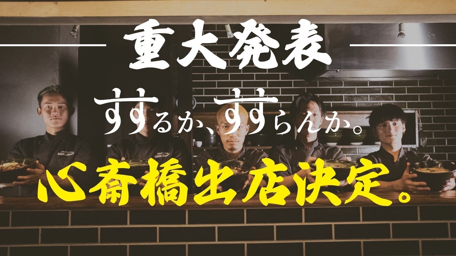 2024年2月23日(金)に、すするか、すすらんか。は、大阪心斎橋に2店舗目をオープンします。開業にあたり弊社初のクラウドファンディングに挑戦します!私たちがビジョンに掲げる『日本の若者に"選択肢"を示す。』を体現する店舗として、1人でも多くの方にこの取り組みを応援していただけるように。