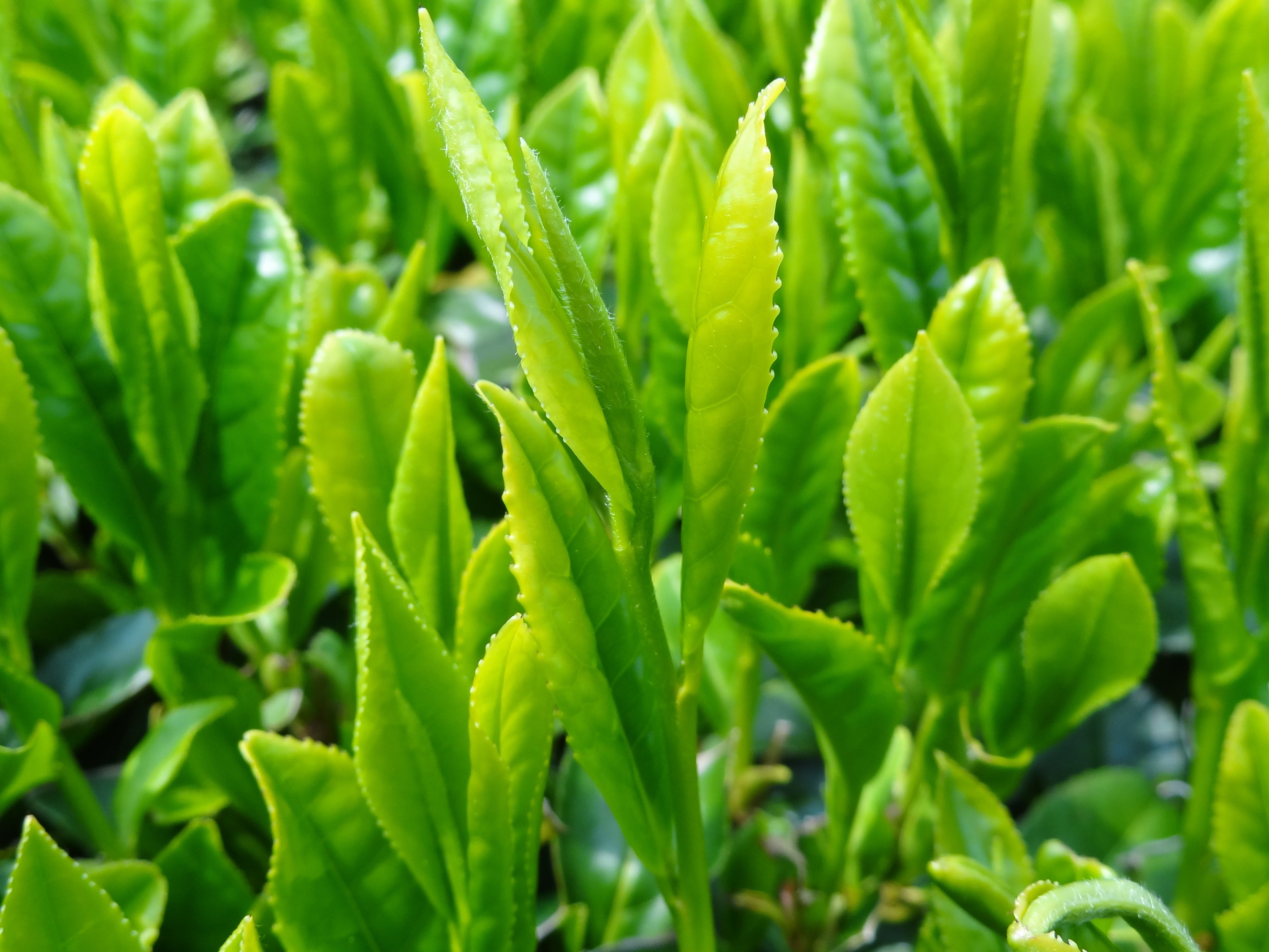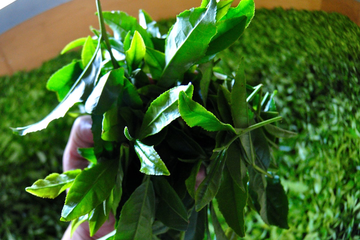 瑞々しい摘みたての生茶葉