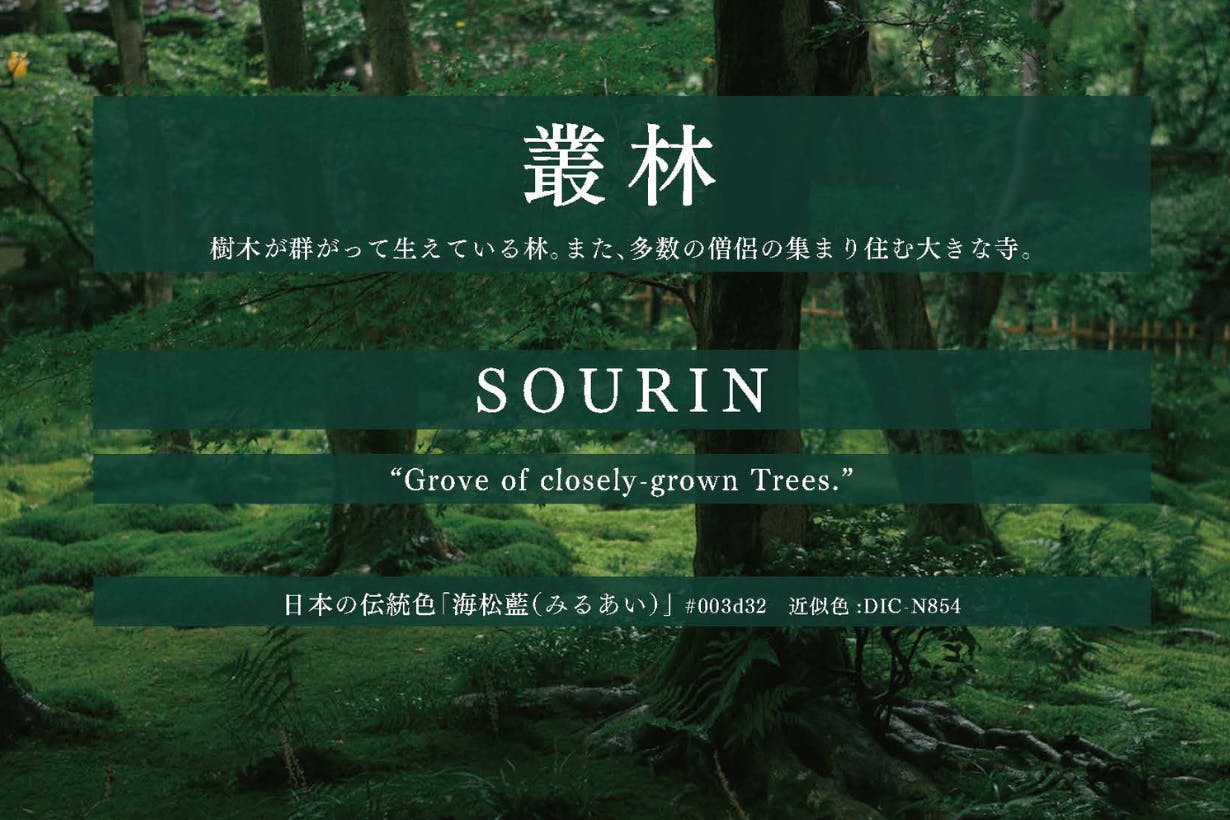 「02_叢林 - SOURIN 」樹木が群がって生えている林。また、多数の僧侶の集まり住む大きな寺。禅林や禅寺、禅院。僧園や僧林。Grove of closely-grown Trees.Wood-Green-Leather