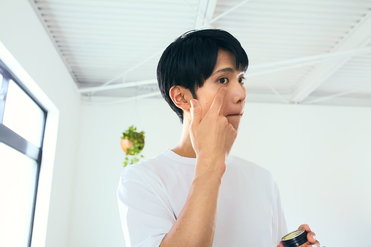 スキンケア方法(軽く顔に塗って馴染ませます)▷