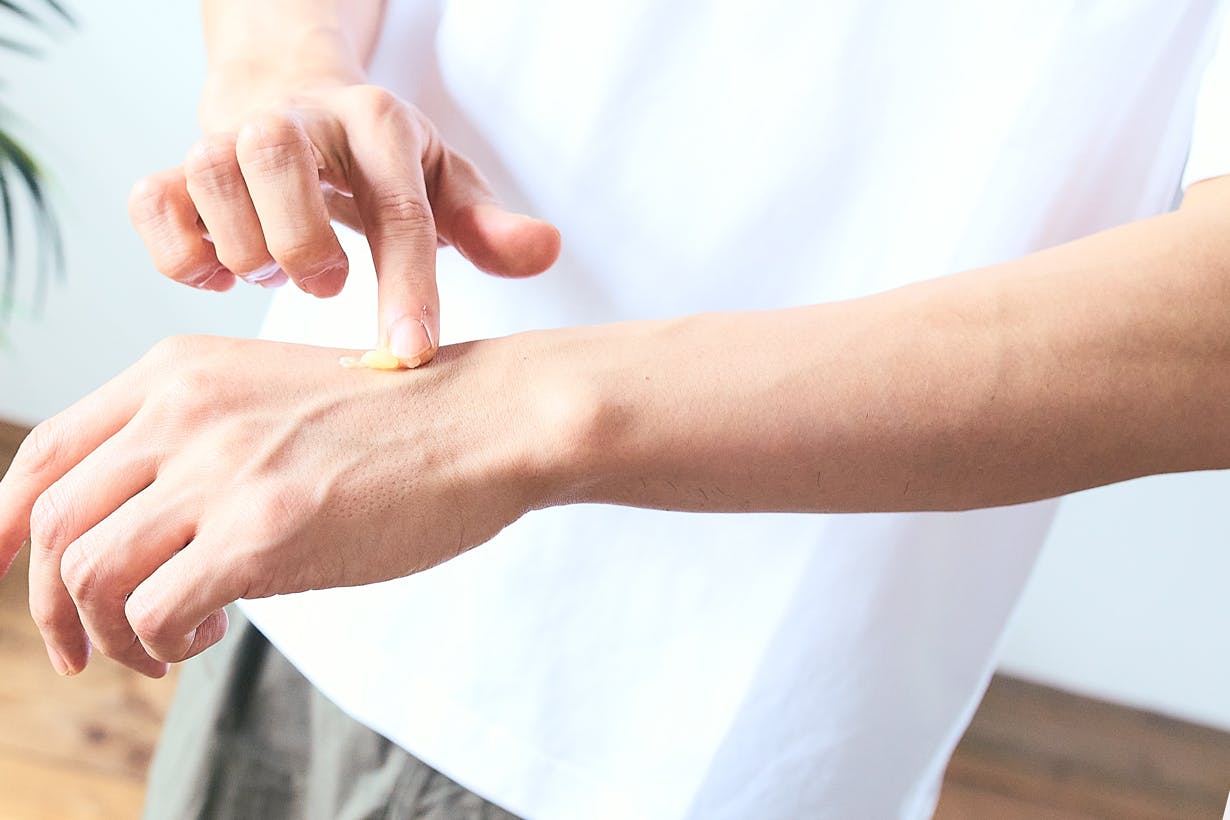 ケースのバームに指の腹を滑らせるように、パール一粒程度の適量を手に取ってください。体温でオイル状になったところで、毛先や髪全体になじませてください。