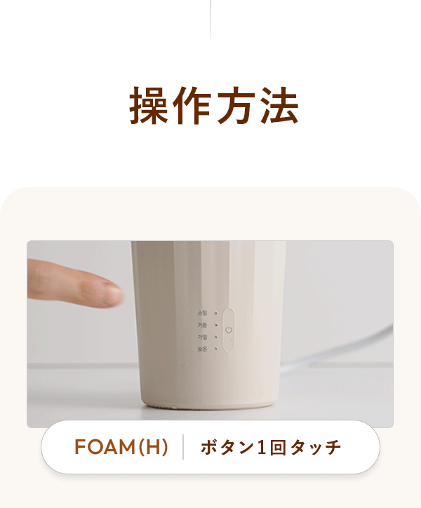 ・FOAM(H):約2分40秒 約50度前後で暖かいフォームミルクを作ります。