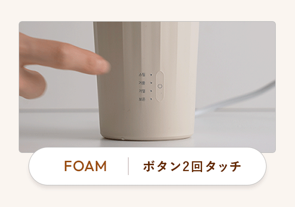 ・FOAM:約2分 液体の温度でフォームミルクを作ります。