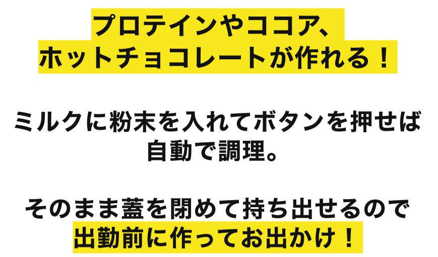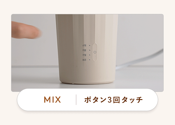 ・MIX:約3分 50度前後で温めながら粉末を溶かしながら液体を混ぜます。フォームミルクは出来ません。