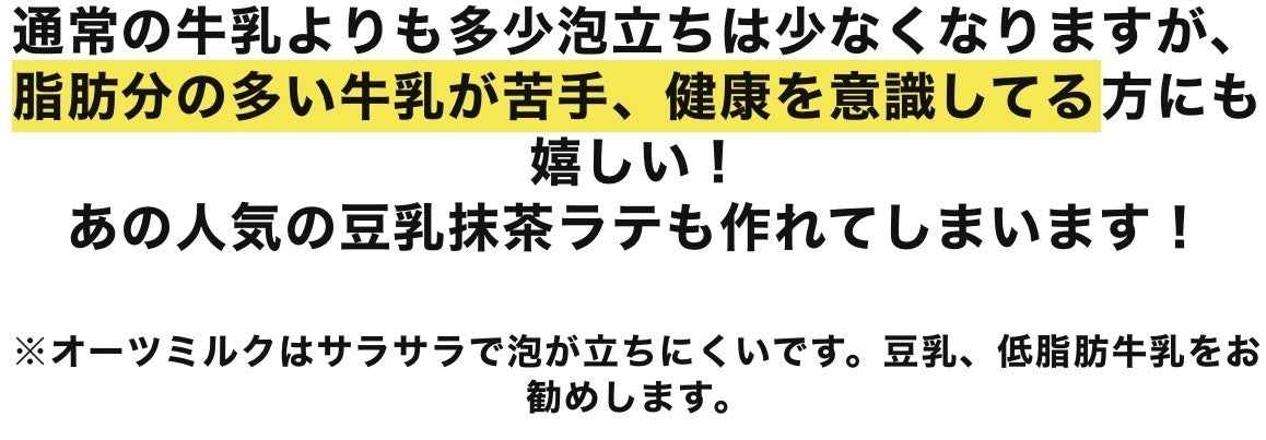 ③低脂肪、無脂肪、豆乳など牛乳の種類によっては泡が発生しにくい場合があります。