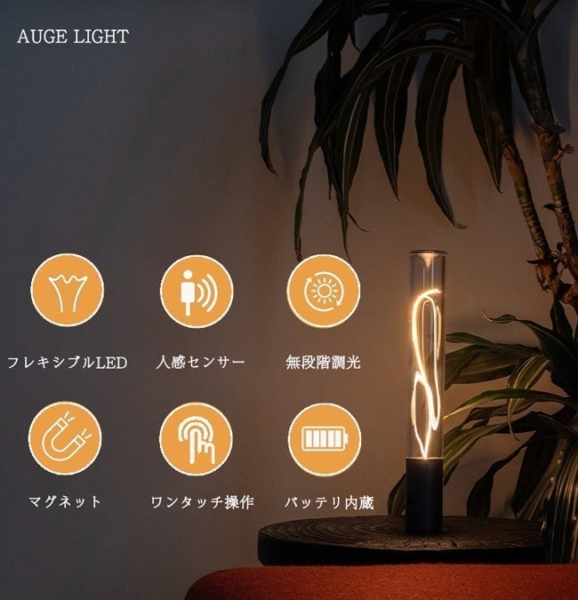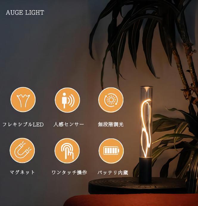 Augelightは柔軟性がある極細のLEDフィラメントを採用、明かりの形を自由自在に変えられる人感センサーLEDライトです。