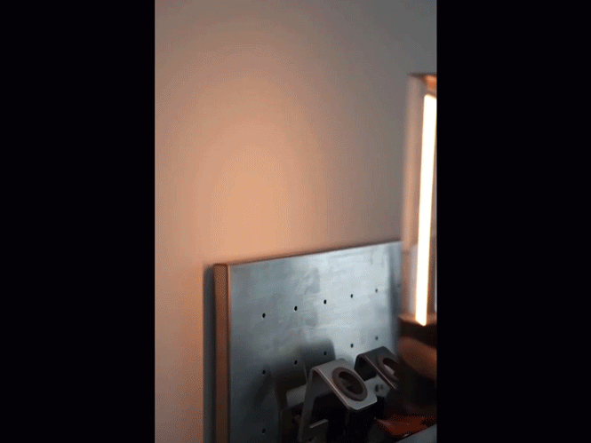 底面のマグネットと吸着させることで真っ直ぐな明かりを作ることもできます。