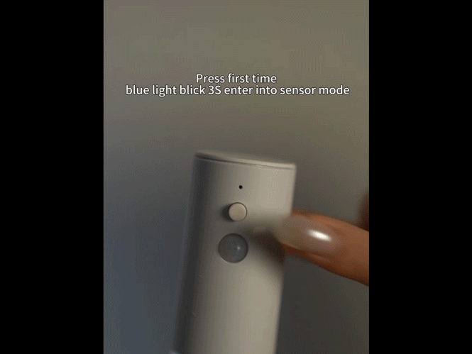ボタンを一回押し、ブルーライトが点灯すると、人感センサーモードに入ります。