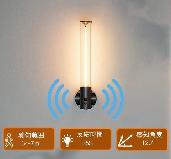 人や動くものに120度のセンサーで探知して、ライトを自動点灯・自動消灯します。
