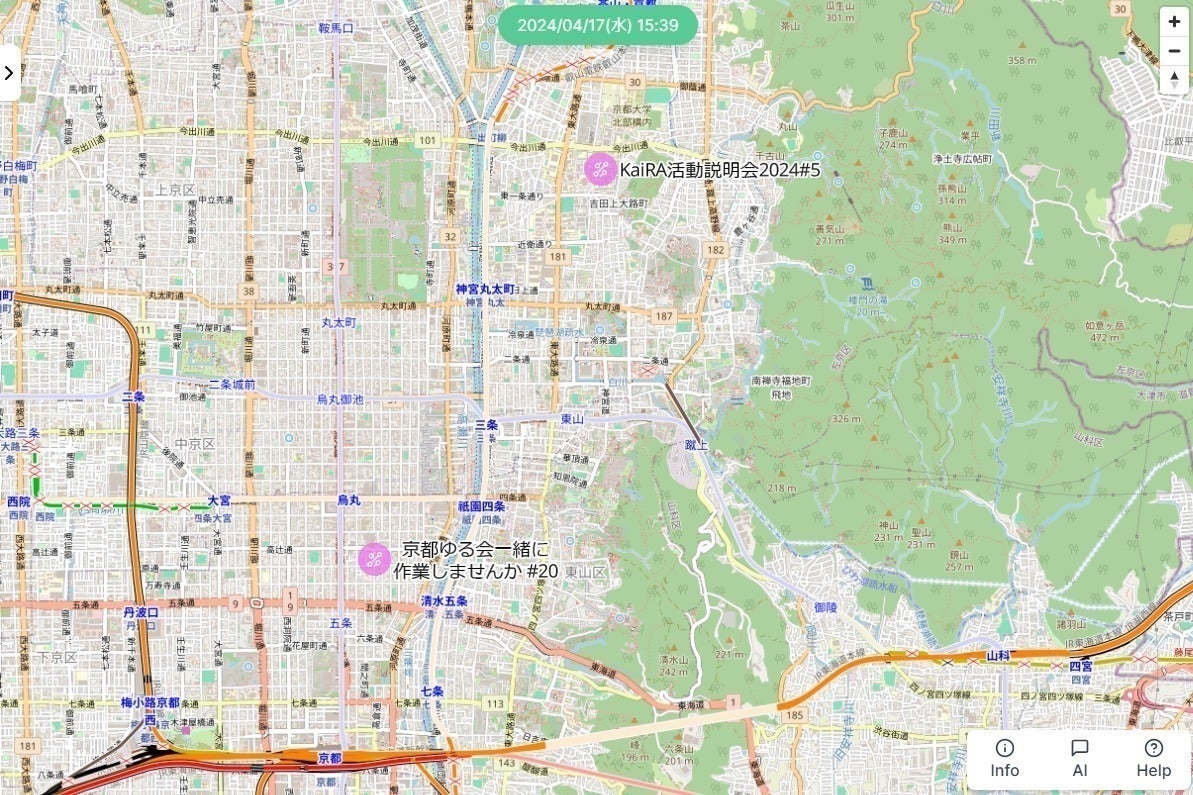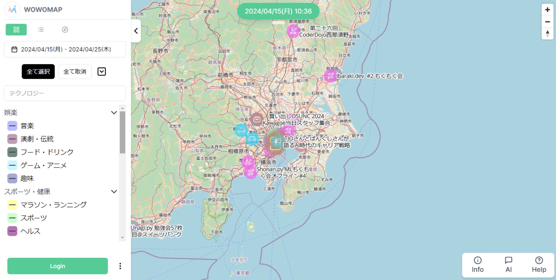 ユーザーがイベントを登録し、地図上に反映・表示させる機能も備えています。これにより現状のイベント情報に加え、他にも面白いイベントも共有することが可能です。イベントの詳細情報や、参加方法なども提供され、情報アクセスの更新が出来ます。