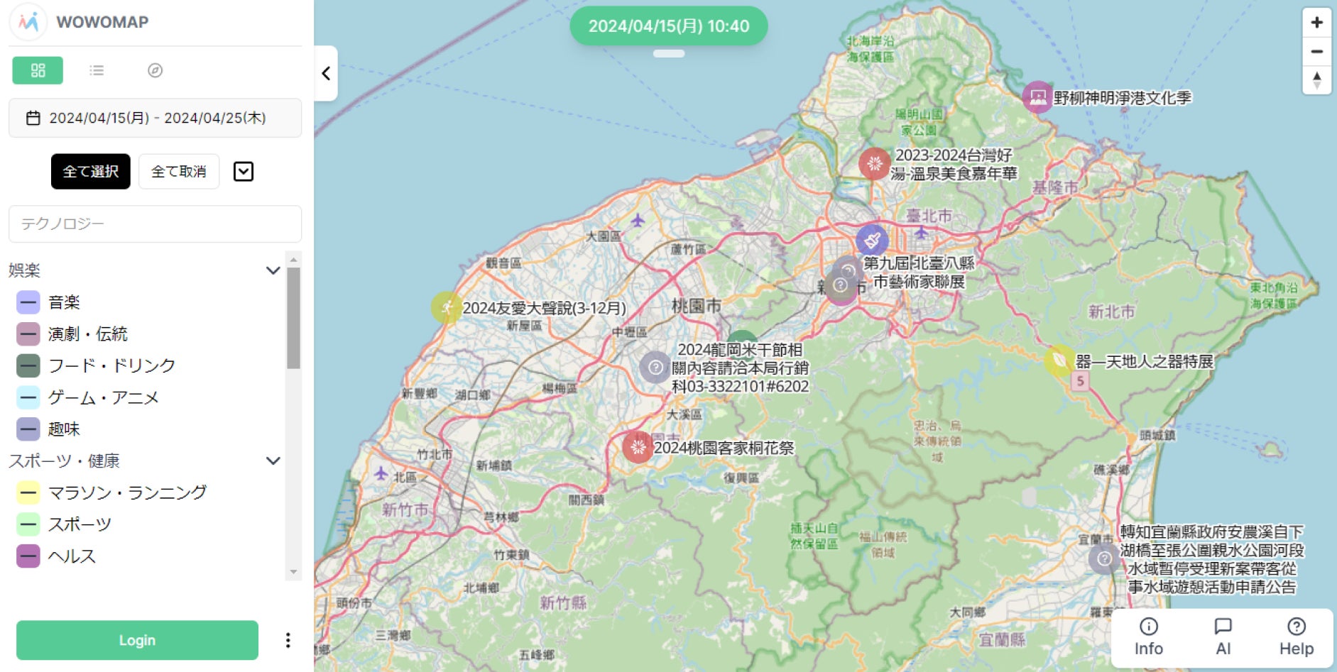 2024年4月現在、日本でのイベント情報の他に、シンガポール・台湾の観光イベントを掲載しておりますが、新たなデータが取得でき次第、順次、追加導入して行きます。