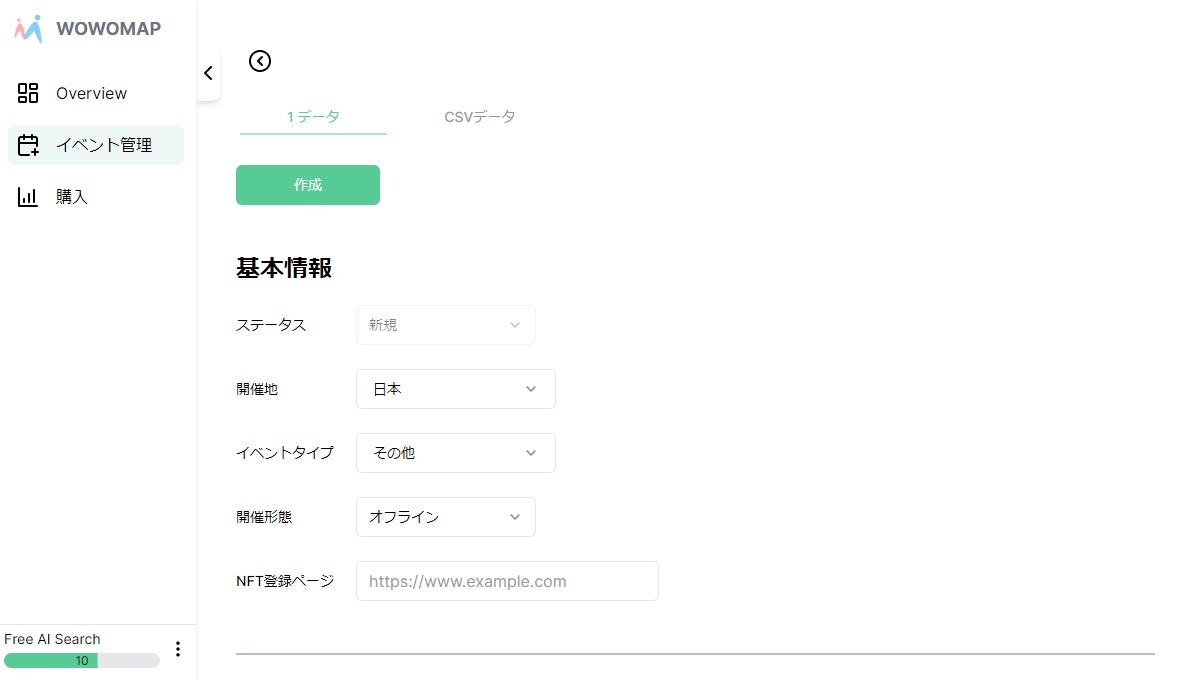 無料アカウントでは1回の操作で1つデータのみ登録可能ですが、有料アカウントではCSVデータを一括登録できる機能を提供します。これにより、大量のイベントデータを効率的にシステムにインポートすることができ、時間と労力を大幅に削減します。データ管理がより柔軟に、速やかに行えます。