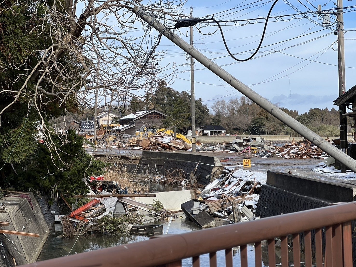 今は電気が通り、水道が使えるようになってきており、少しずつ道路が補修されておりますが、町を見渡せばまだ1月1日に変わり果てた姿のままの能登町です。