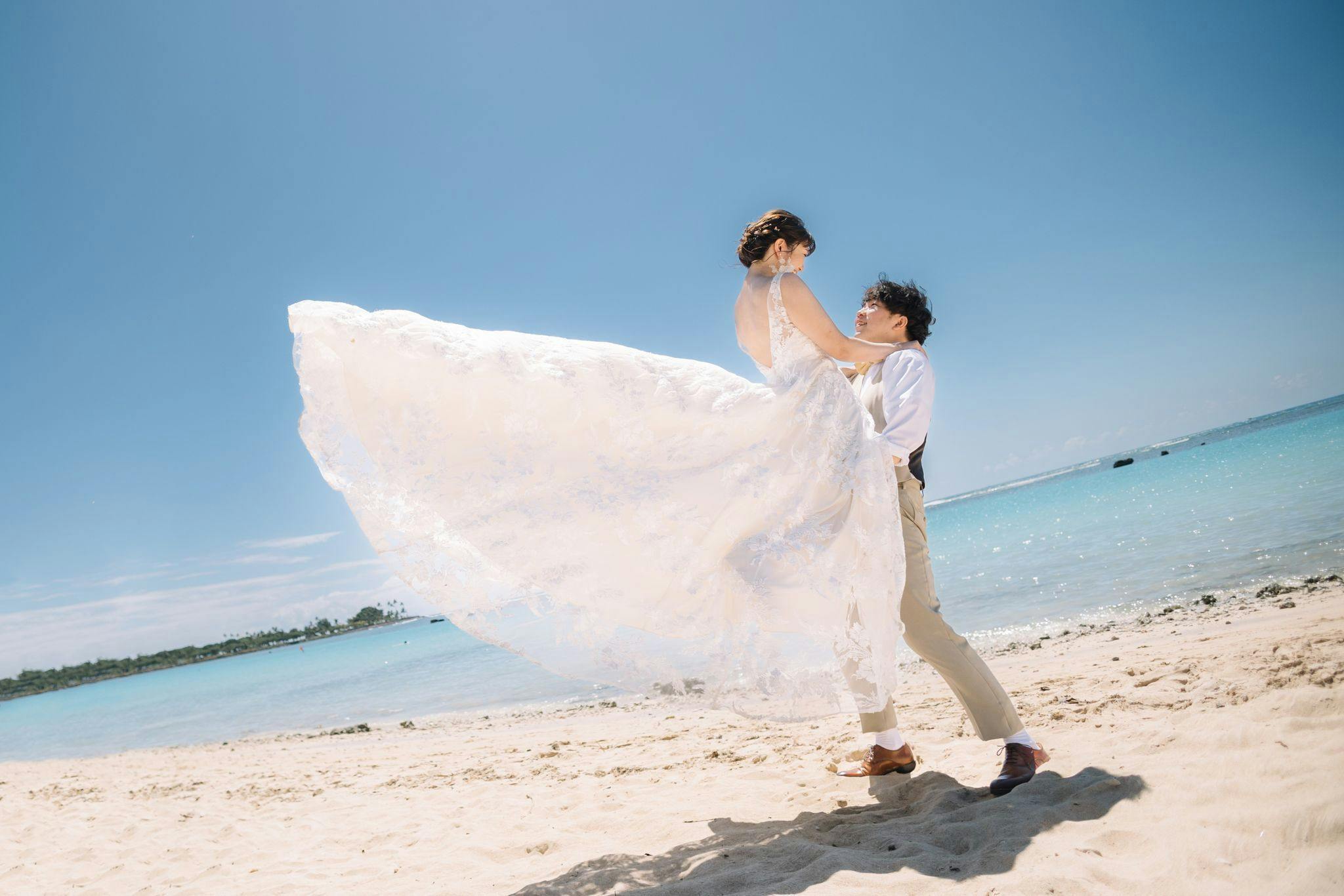 挙式+ビーチフォト+もう1か所フォトで100万円以下も実現できます。