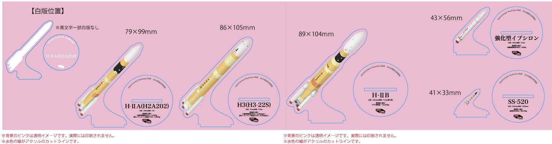 イプシロンとSS-520は、台座に対して結構小さいサイズとなりますが、大きさを比較しやすくするため、台座の大きさはこの2機種も直径60㎜で決定としました。