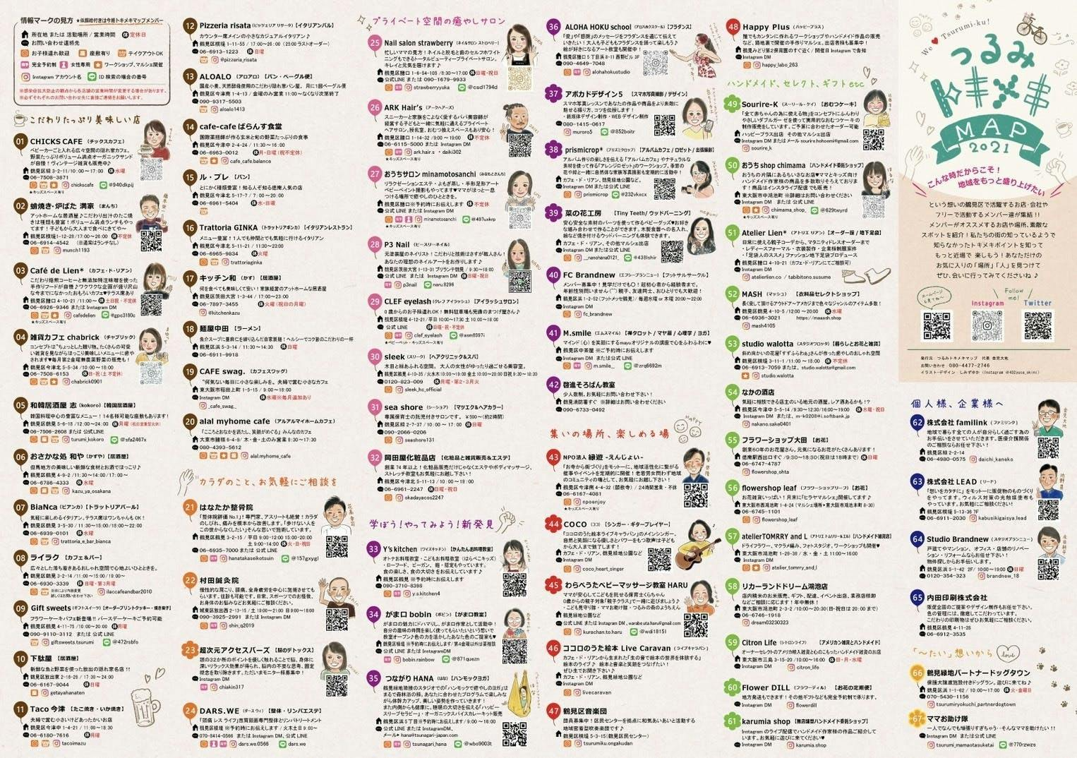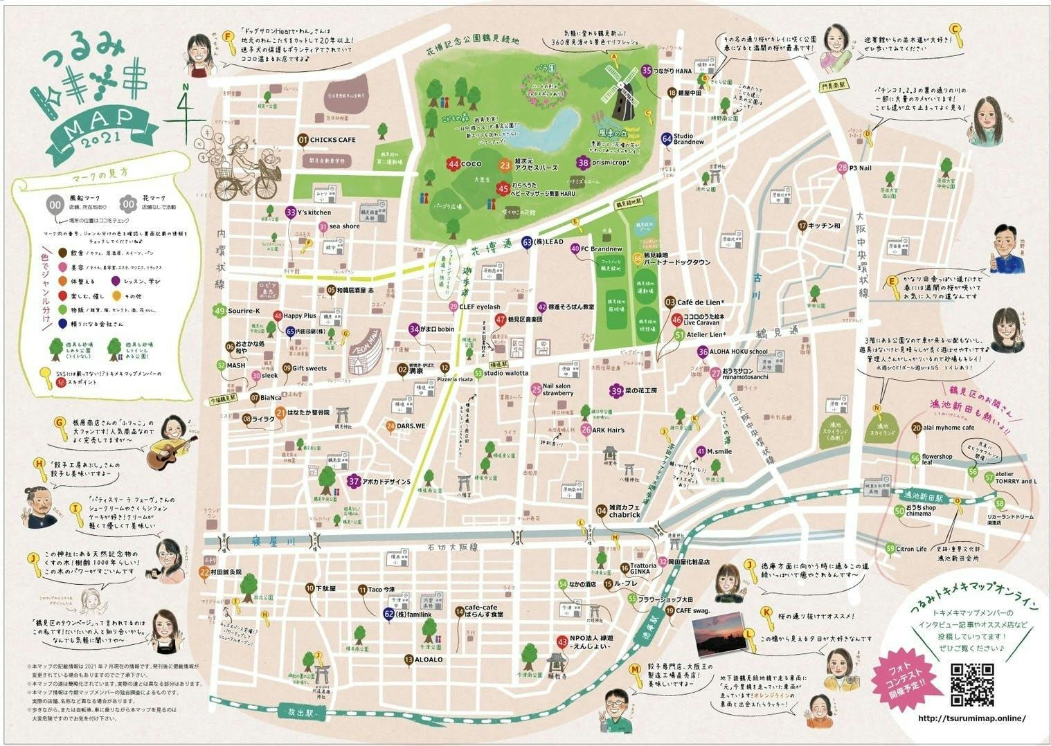 そんな風に考える中で過去に鶴見区の集まりで「街のMAPを作りたいね!」と話をしていたことを思い出し、鶴見区で働くみんなに声をかけました。鶴見区のみんなでほぼ毎日のようにやりとりをしながら半年間で作り上げたのがつるみトキメキMAPです。