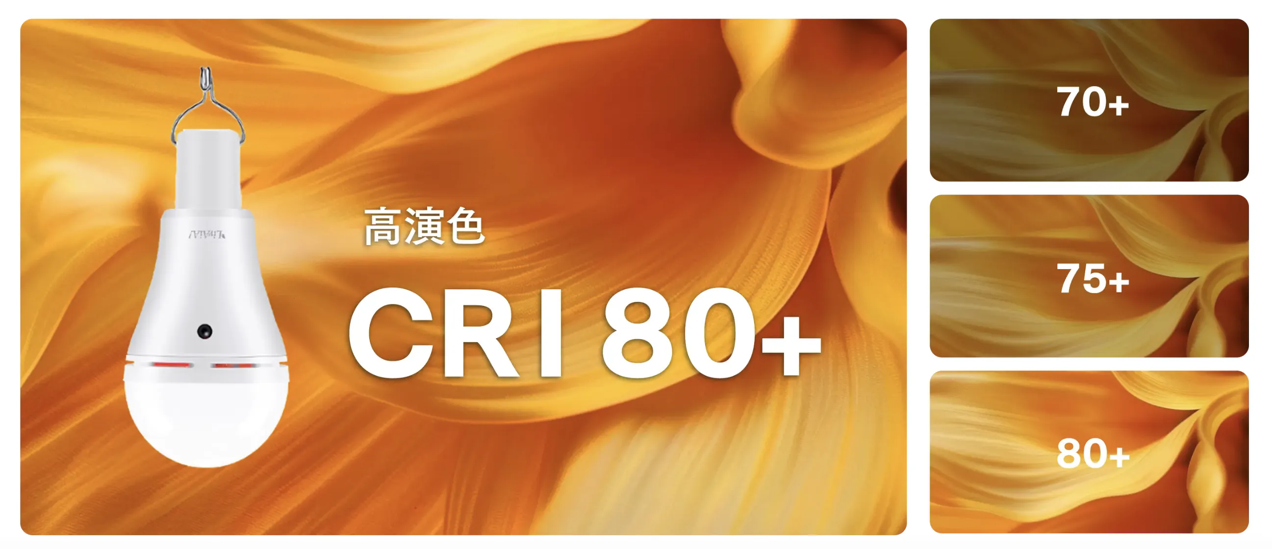 高演色CRI≧80、演色指数は80CRI相当で自然光に近い明かり。