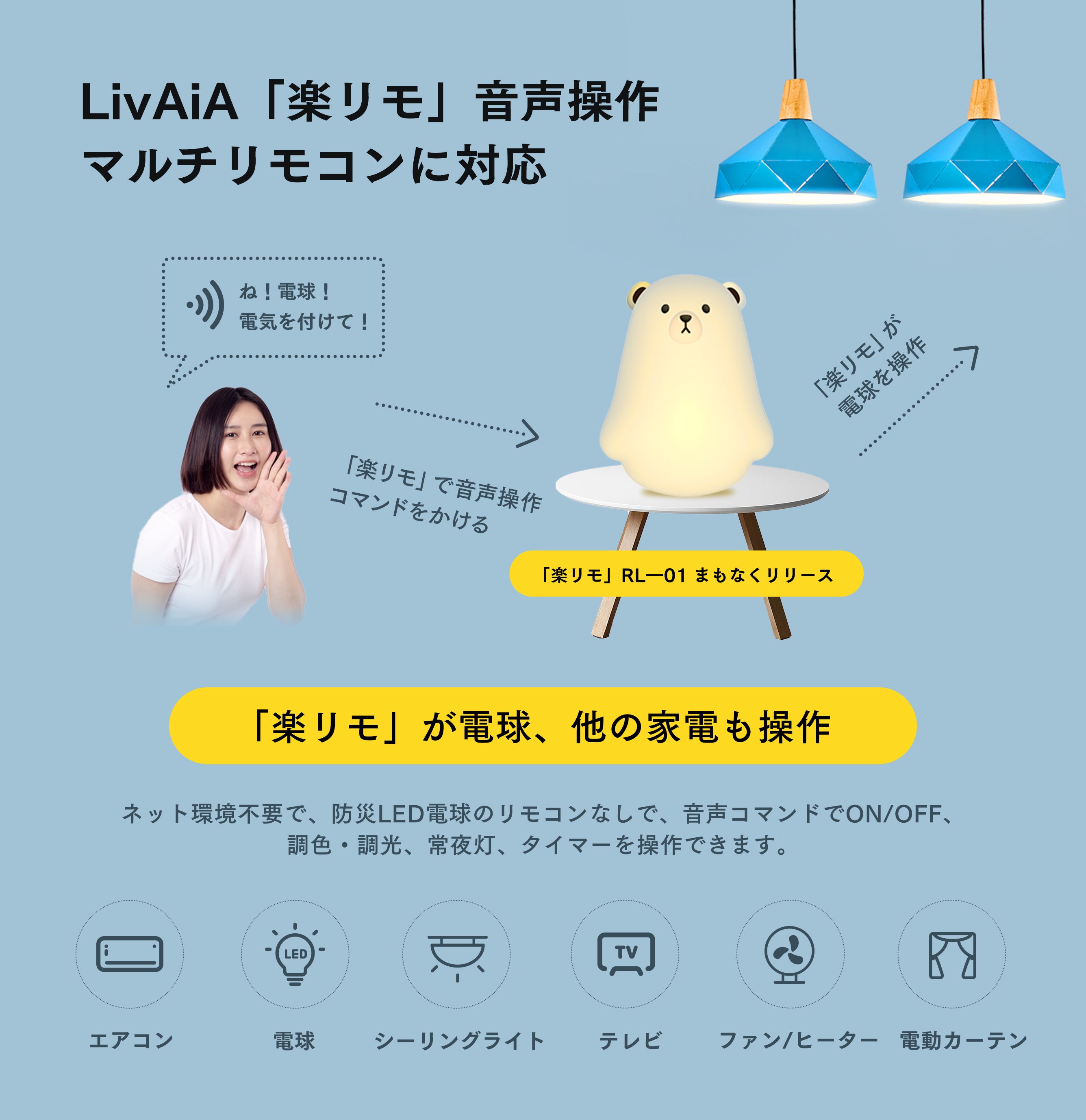 楽リモ経由で、本製品『防災電球』だけでなく複数の家電を音声操作することができる