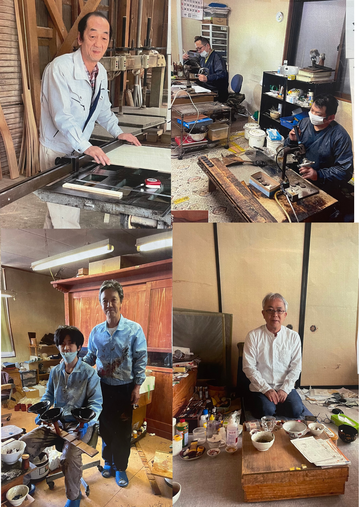 大藤漆器店が抱えている一部の職人左上 木地師吉田さん