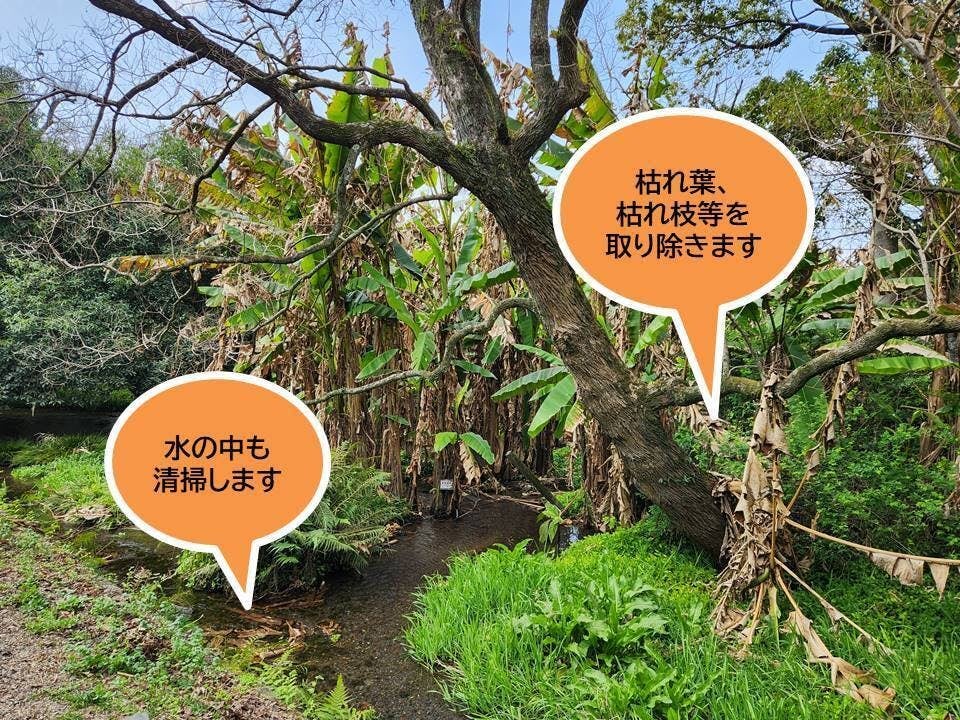 今年の4月7日に開館したこども図書館に直結する細川庭園と芭蕉園を中心に美化・清掃活動を行い、遊歩道の整備活動をしたいと考えています。
