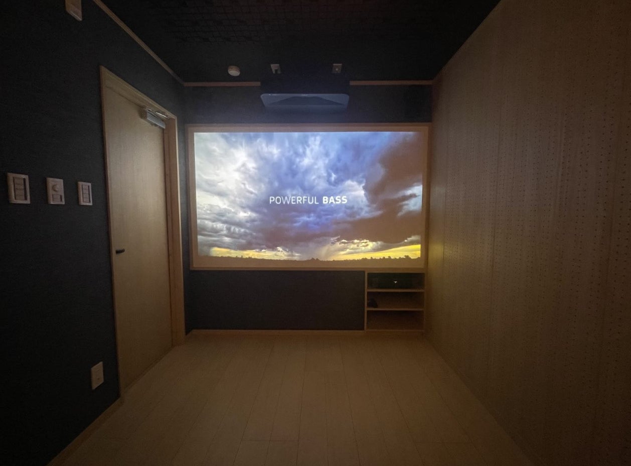 そして、私の長年の夢であったシアタールームもスクリーンが設置され着々と完成が近づいています!