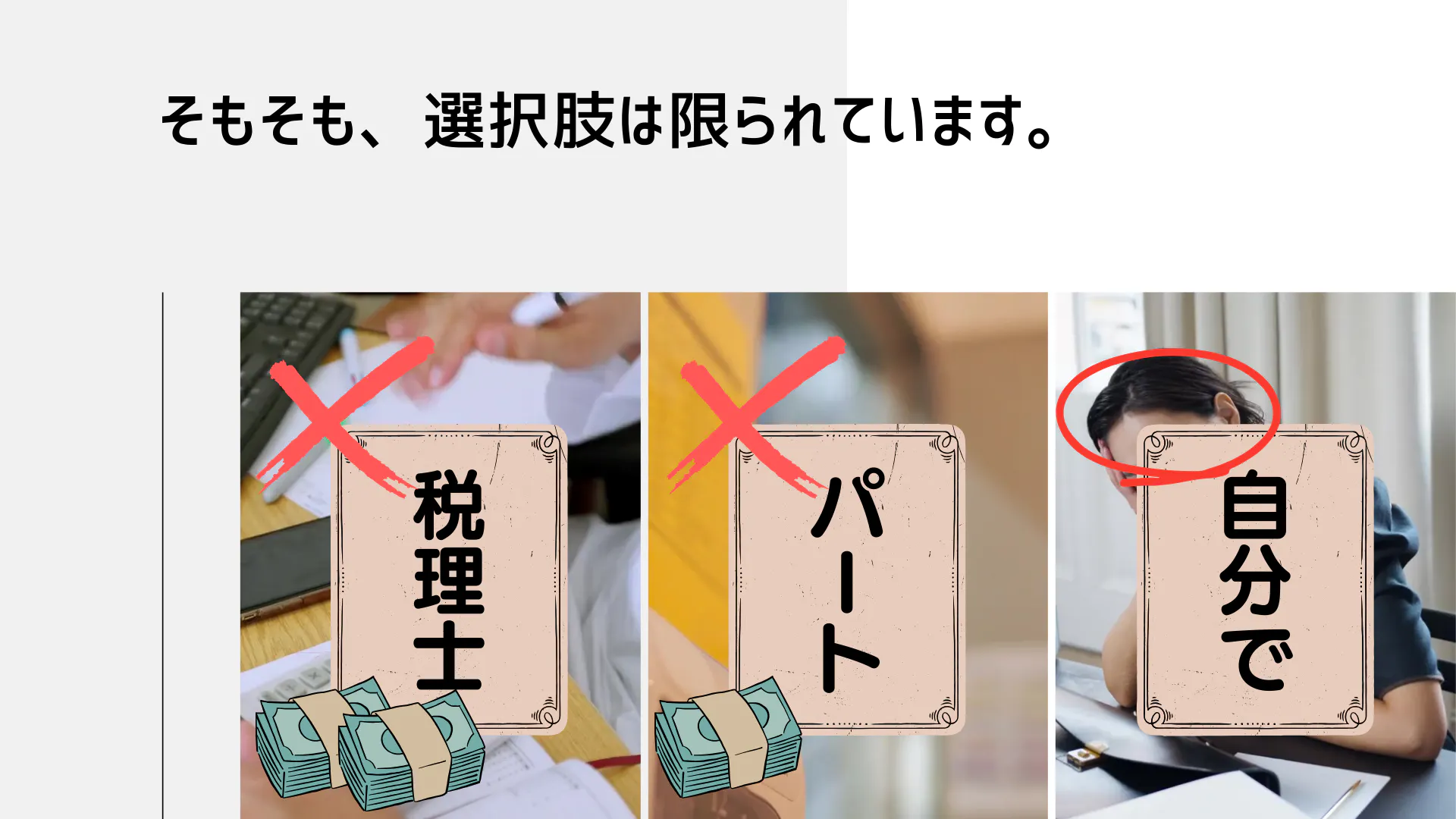 ②経理のパートを雇う:事業規模が小さいと、1ヶ月あたり1-2日分程度しか業務量はありません。そんな短時間のパートを雇う事は現実的ではありません。
