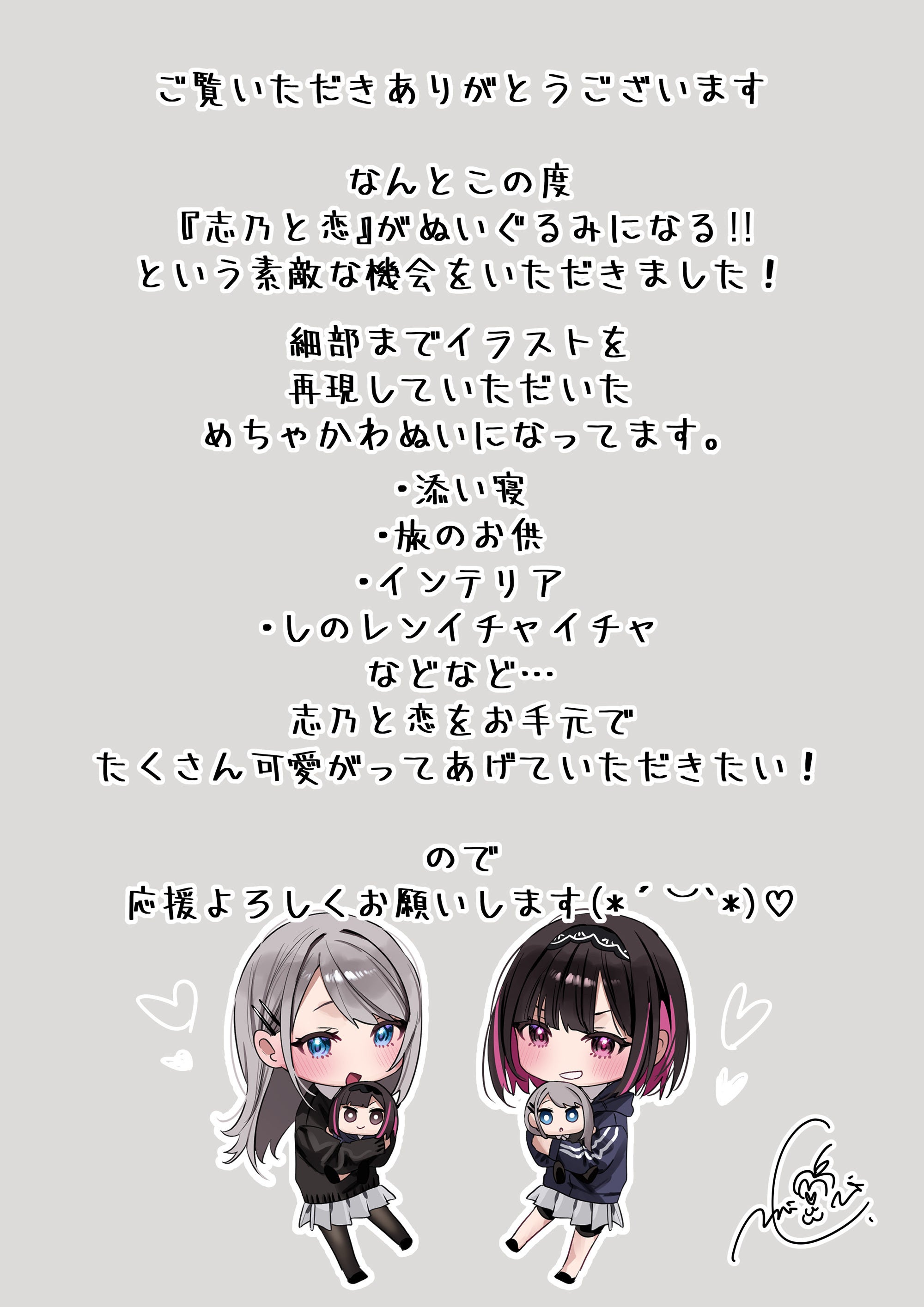 千種みのりの描く「志乃と恋」がぬいぐるみ化に挑戦します!!