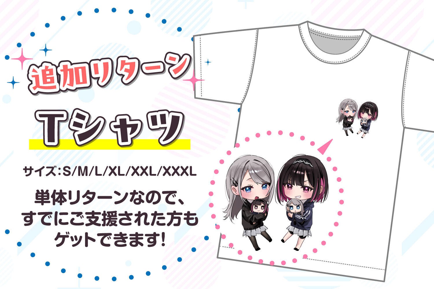 2024/04/26 19:00Creationスタッフです。志乃と恋ぬいぐるみプロジェクトへのご支援ありがとうございます!本プロジェクトのご支援終了まであと3日となりました!追加リターンでは、直筆サイン入り色紙とTシャツが登場!!すでにご支援された方もゲットできます♪さらに、、、支援者様「全員」にステッカープレゼント中です!残り3日ですので、ぜひお見逃しなく♪最後までご支援よろしくお願いします! もっと見る
