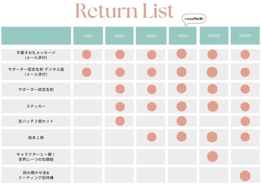 このプロジェクトへのご支援いただいた方には、特別なリターンをご用意しております。