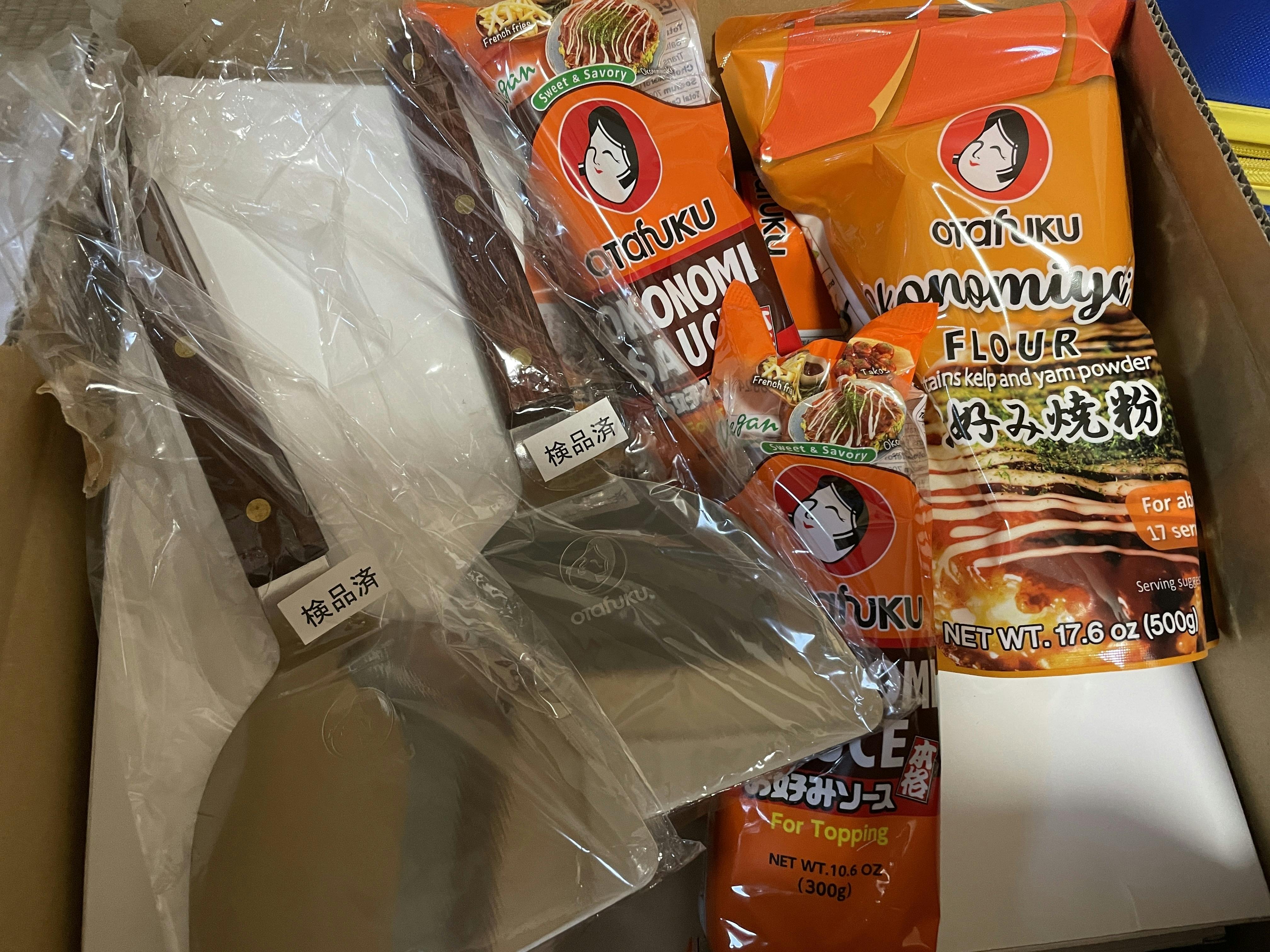 オタフクソース株式会社様より、お好み焼き粉とソース、お好み焼きのコテをいただきしました。