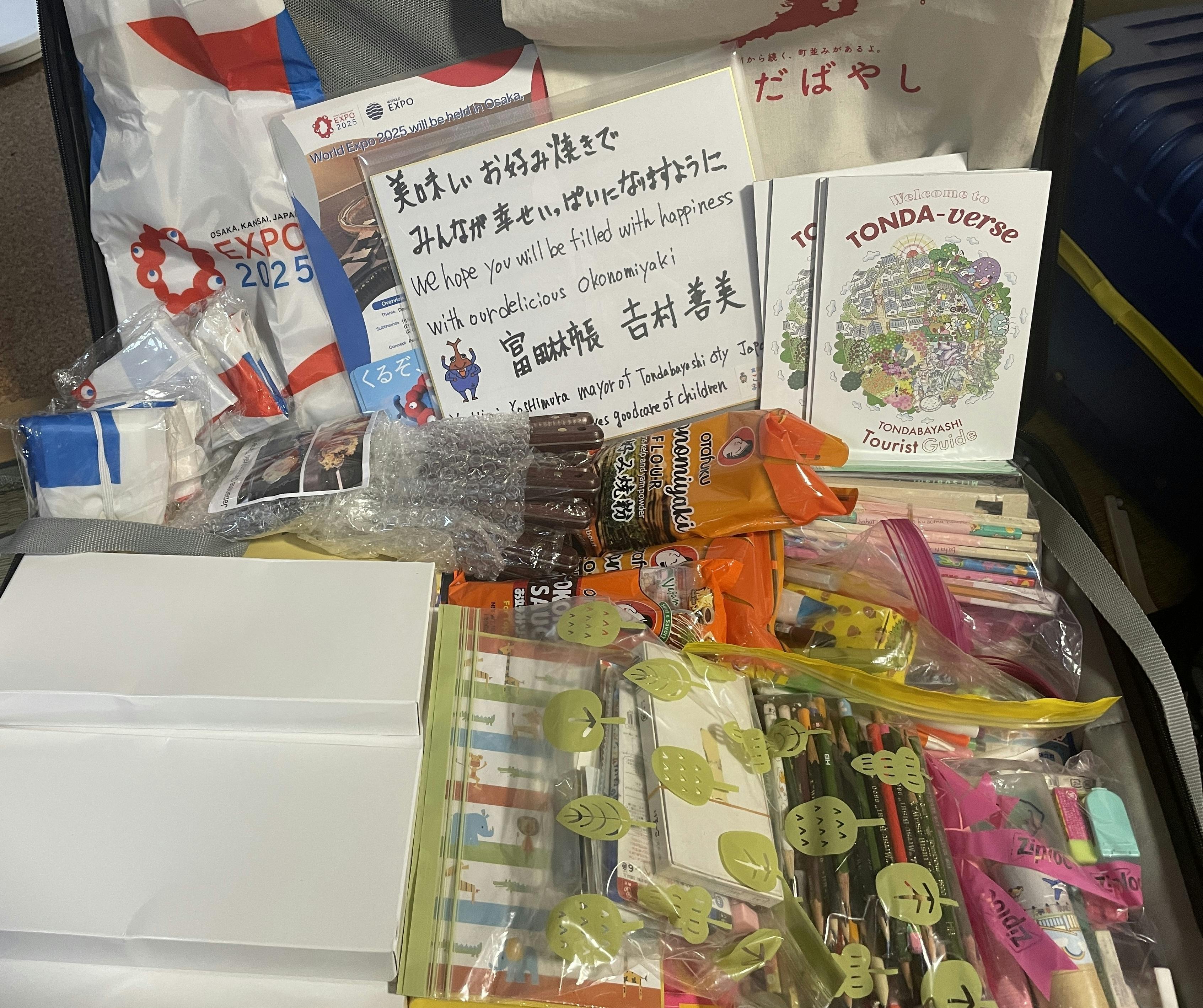メッセージボードと富田林市グッツ、2025年関西大阪万博グッツ