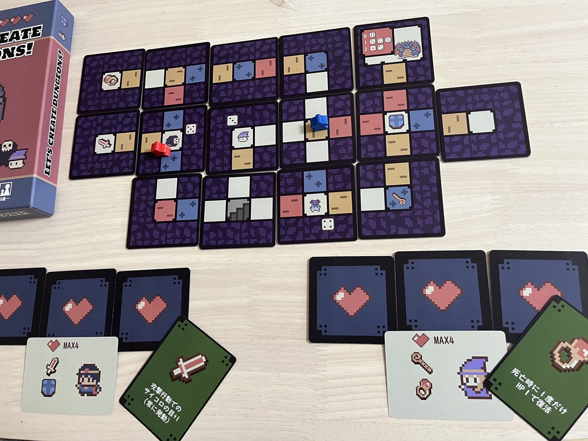 「2人で協力してダンジョンを作成/修正し、作ったダンジョンですごろくを楽しんで魔王を倒すボードゲームです」