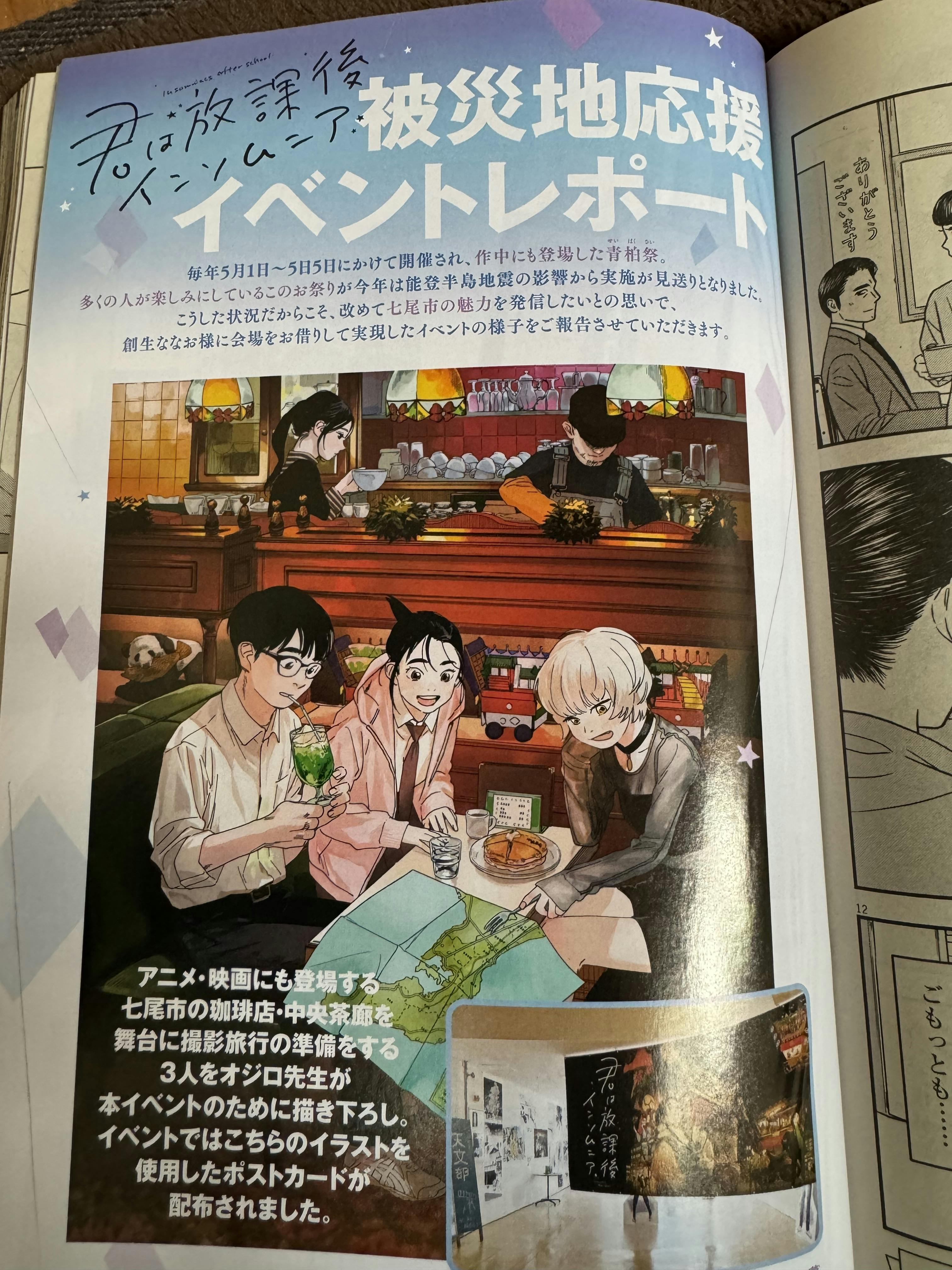 6月10日発売の週刊ビッグコミックスピリッツに、先日開催されましたオジロマコト先生のライブイベントのレポートが掲載されているのですが、その時に配布されました当店が描かれたポストカードも掲載されています。お店の復活を願ってオジロ先生が描いてくださったと伺って感激しております。そして必ずお店は復活させる!とあらためてここに宣言します!これからも応援よろしくお願いします!