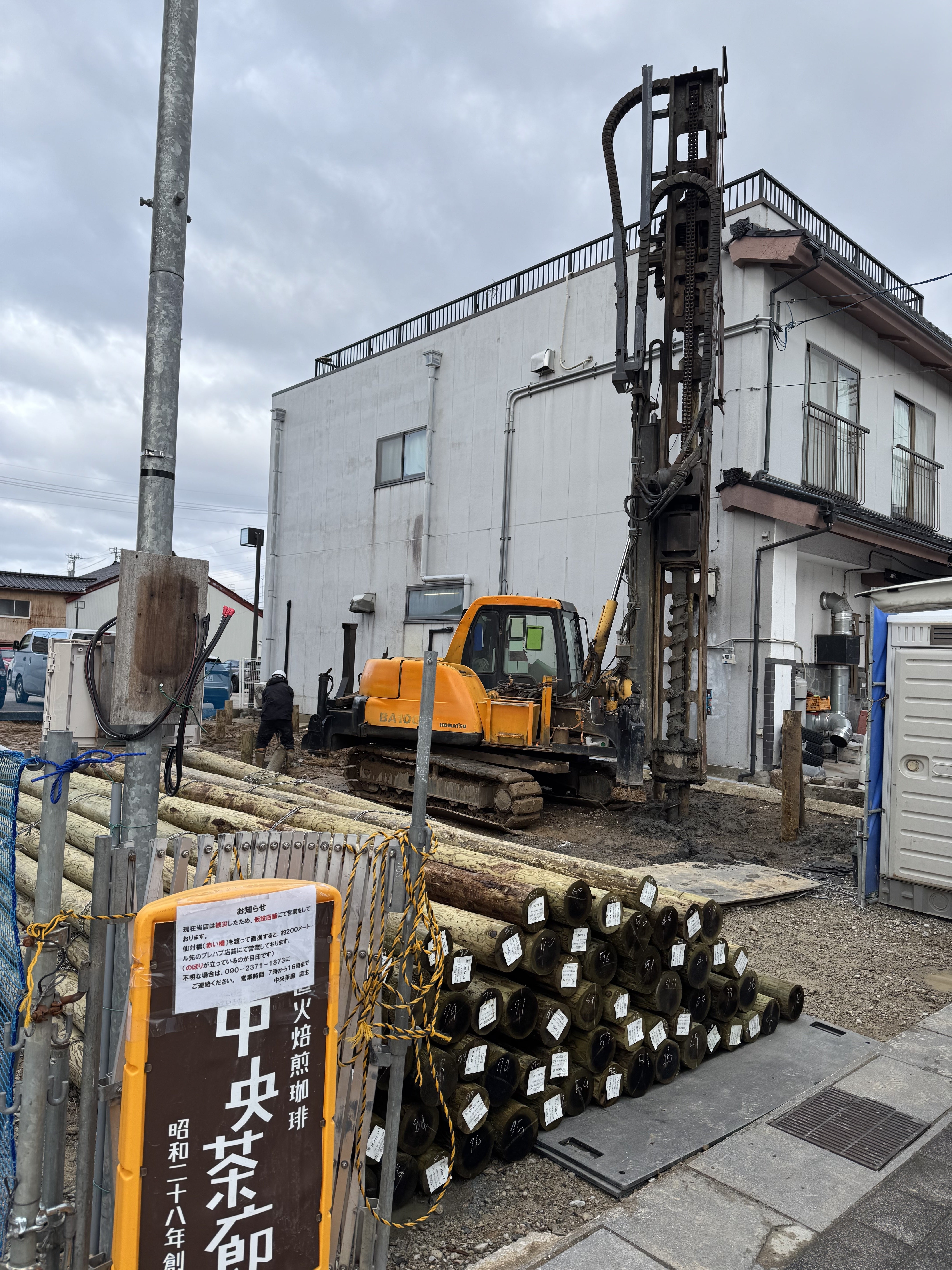 いよいよ、地盤改良を兼ねた杭の打ち込みが始まりました。