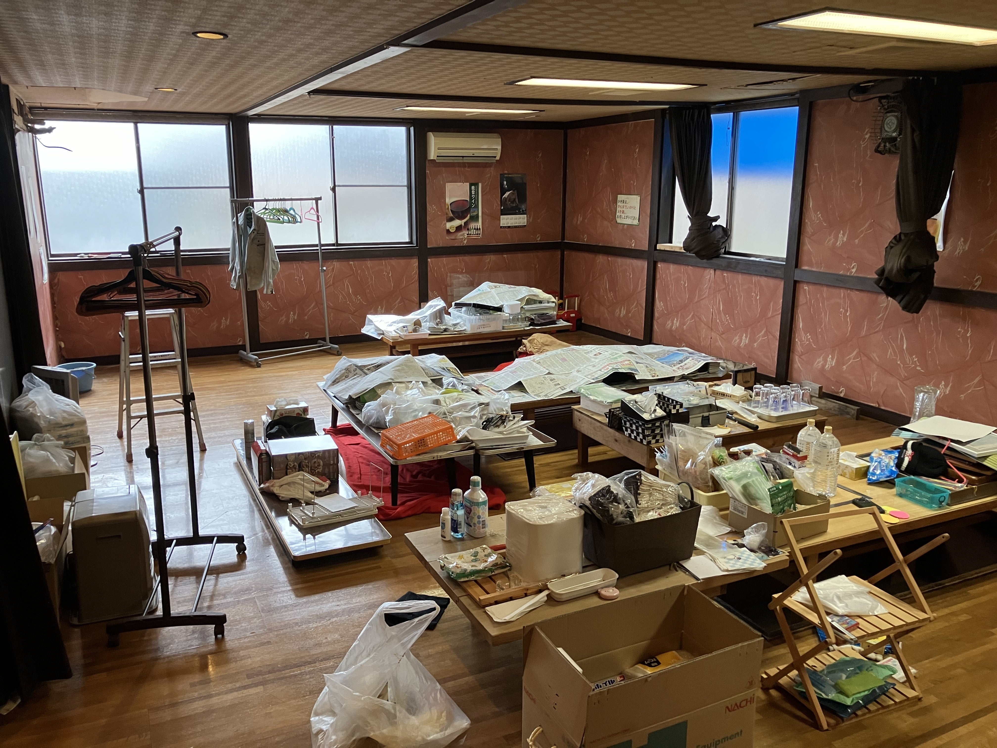 必要なイスやテーブル等は倉庫へ。不要となってしまった座卓、テーブル、ソファ、ふすまなどは災害廃棄してきました。午前中しか活動できなかったので全てはやり切れませんでしたが、必要であればまた行きます!