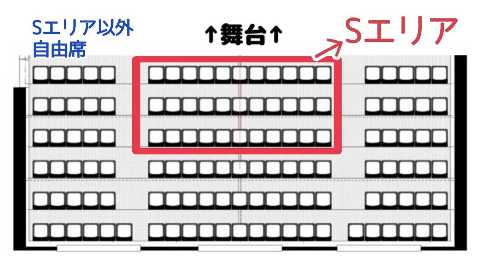 ※Sエリア以外の自由席に先行入場にて入っていただけます。先行入場順は先行入場券をお持ちの方、受付順となります。