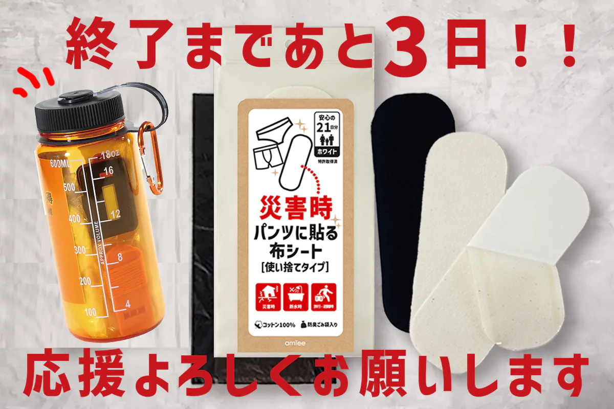 こんにちは、「災害時パンツに貼る布シート」開発のアミーです。
