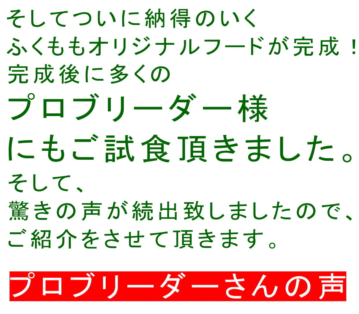 そんな現状を少しでも変えるべく、ちょうど2年前より自家製の総合栄養食ペレットフードの開発に着手し、1年前より販売を行ってまいりました。