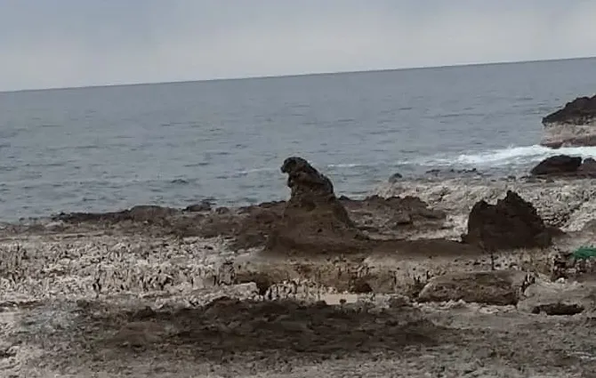 友人の家の前に広がっていた美しい海は隆起して、海岸線が240mも後退したために見えなくなってしまいました。