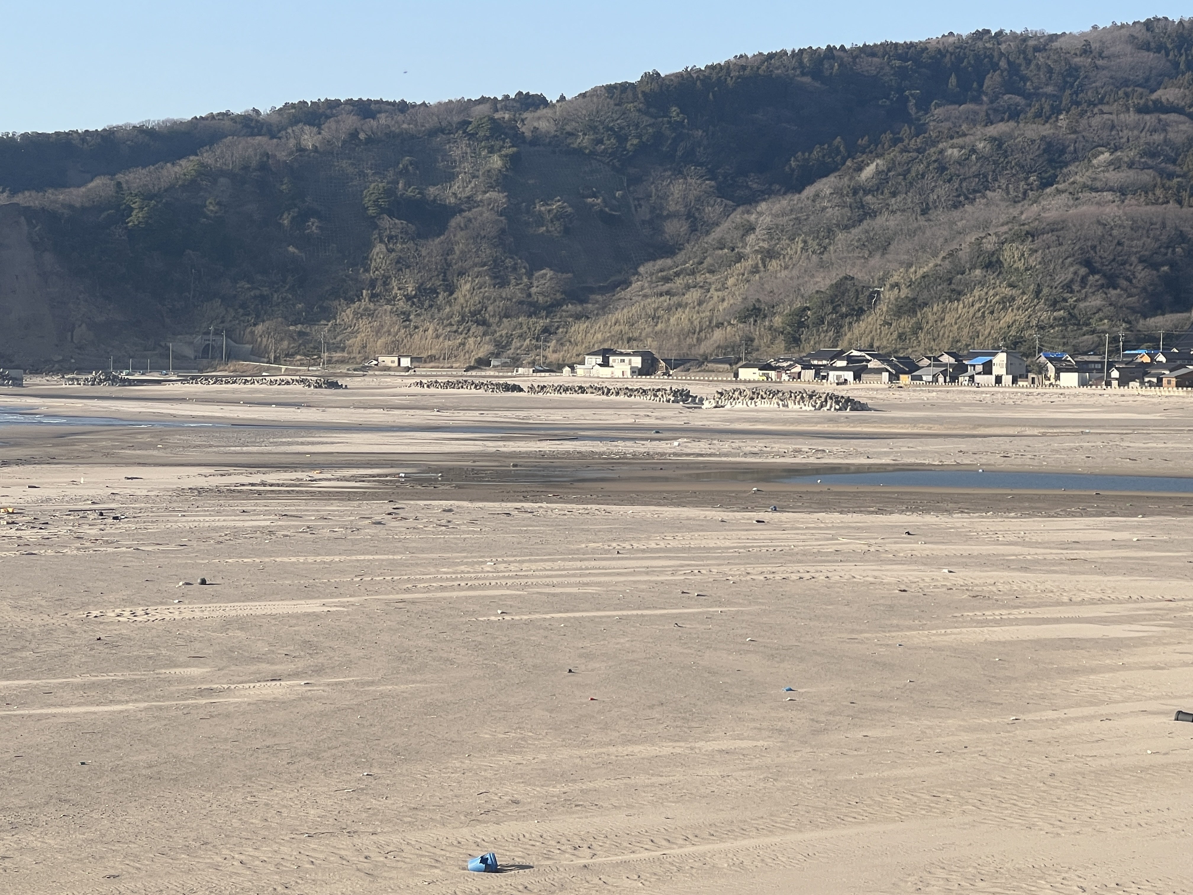 岩に付いていた海藻が白く乾いてパサパサに風化しても、門前の復興は一向に進みません。