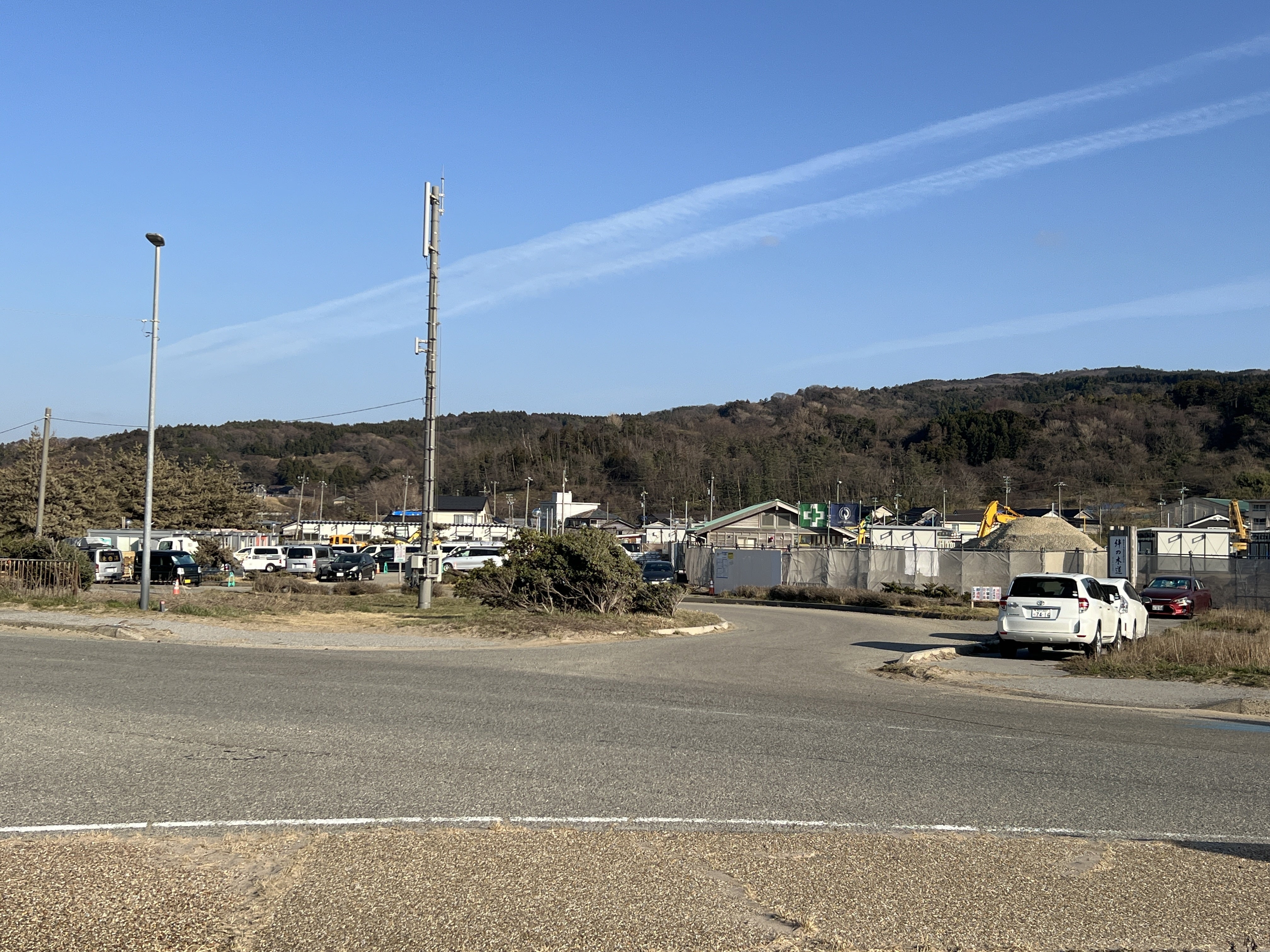砂浜を道一本挟んだ向こうに仮設住宅が大量に建てられ始めました。