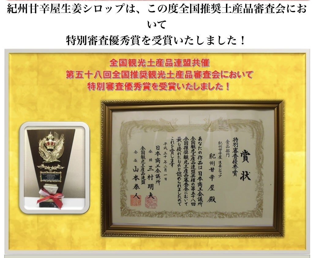 主旨に賛同してくれ、返礼品を提供してくれました。紀州甘辛屋生姜シロップは、
