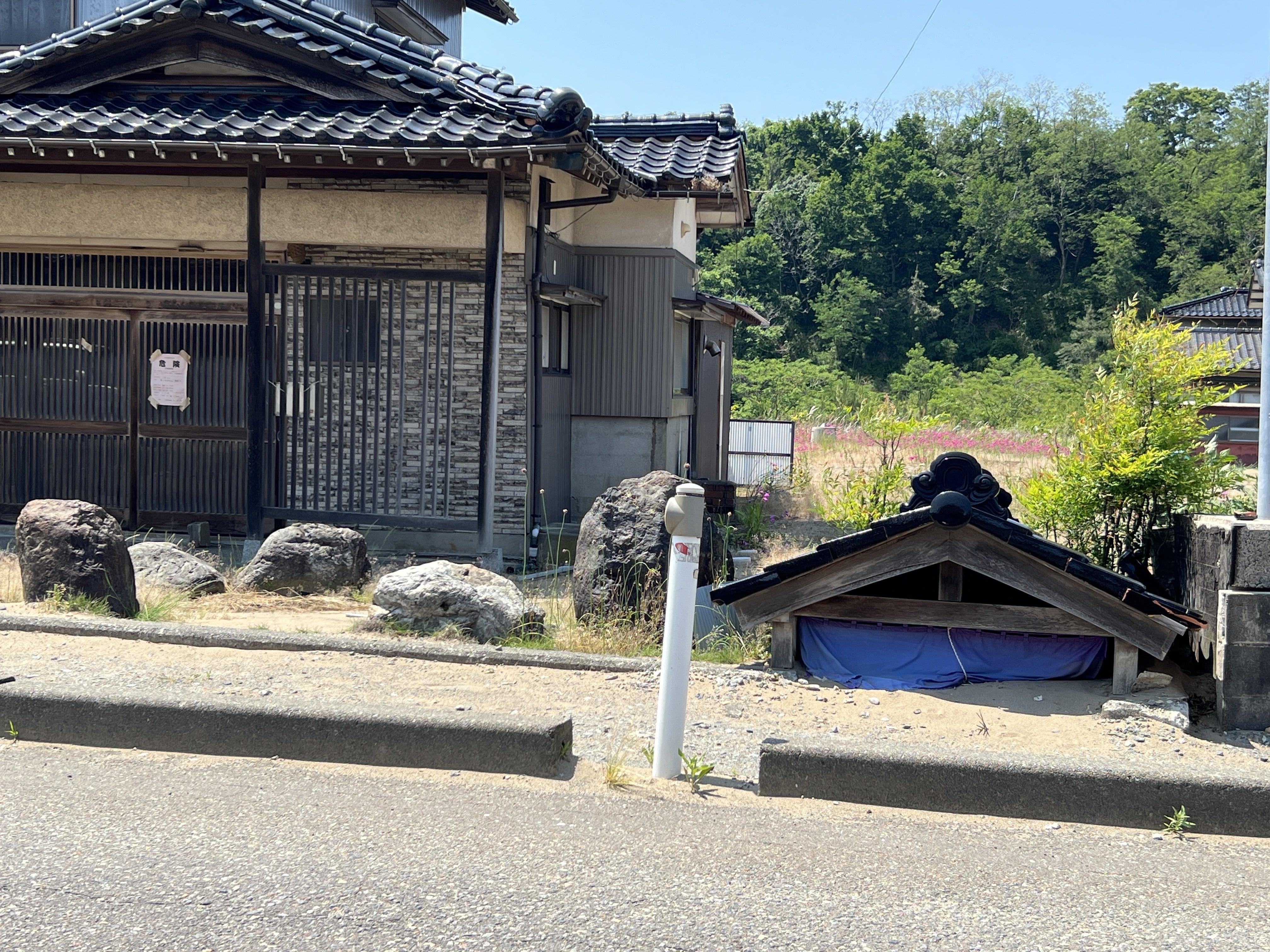 2024/06/02 17:17【公費解体できない内灘の家々】冒頭の画像の異常さにお気づきだろうか。張り紙が貼ってあるから、被災した家なんだろうなとはき気付かれるはず。しかし、通常の地震被害とは異なる。右下に祠がある。なんと屋根以下の部分が地面に飲み込まれている。これが「液状化現象」である。内灘地区は、西荒屋・室を中心に、地形が全く変わる被害を受けた。河北潟に向かって砂丘部分(内灘全体)が滑るように落ち込み、液状化現象で家々が地面に飲み込まれたりした。最大で12mも家が移動してしまったところもある。京都大学の教授による調査では、「前代未聞」とのことである。(コロナを理由に早々と閉鎖された西荒屋小)問題点中には、家が壊れていなくて、地面が裂けたり変形している住宅もある。これ、実は公費解体ができないのだ。建物が半壊以上ではないので、公費解体には当たらないと判断される。だが、地面が裂けたり、隆起・陥没している土地に住めるはずがないので、整地するにしても家は壊すなり移動が必要である。しかし、解体費用の数百万円は、自腹で出すことになる。内灘町は、被災から6ヶ月目だが、地域住民の7割が未だ他地域で暮らしている。私の教え子の奥さんとお子さんとお話をしたが、壊すに壊せず、傾いた家に住むしかないので、そこに住んでいるという。自分の教え子が、そんな状態の中、家族を守って頑張っていると思うと、思いが込み上げてくる。6ヶ月目。なぜ、生殺しのままに放置しておくのか。人間は生きている。希望を失った人は、自ら命を断つ。能登半島地震でも、次々にそういう悲劇が起きているが、様々な理由で災害関連死や自死にカウントされない。「無かったことにしてよしとする。」私は、こんな日本でいていいはずがないと思っている。 もっと見る
