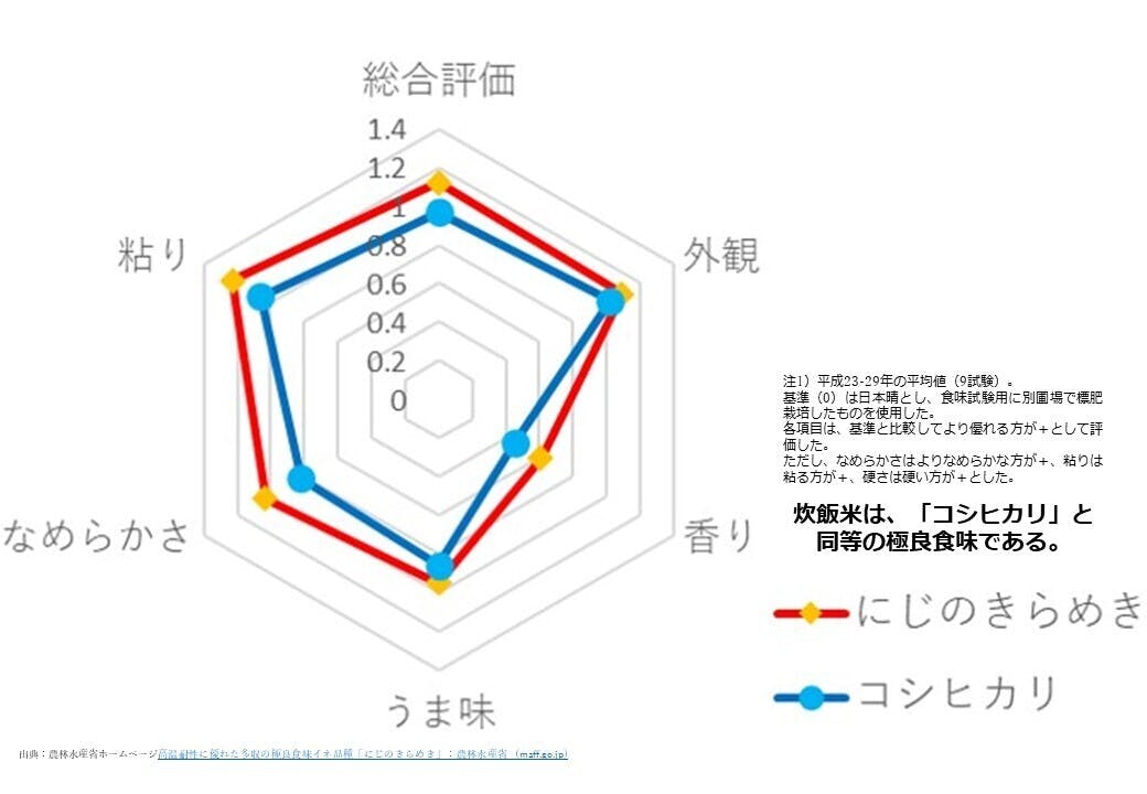 このように、虹のように多彩な特性を持ち、ご飯の炊きあがりが艶やかであることから『にじのきらめき』と命名されました。