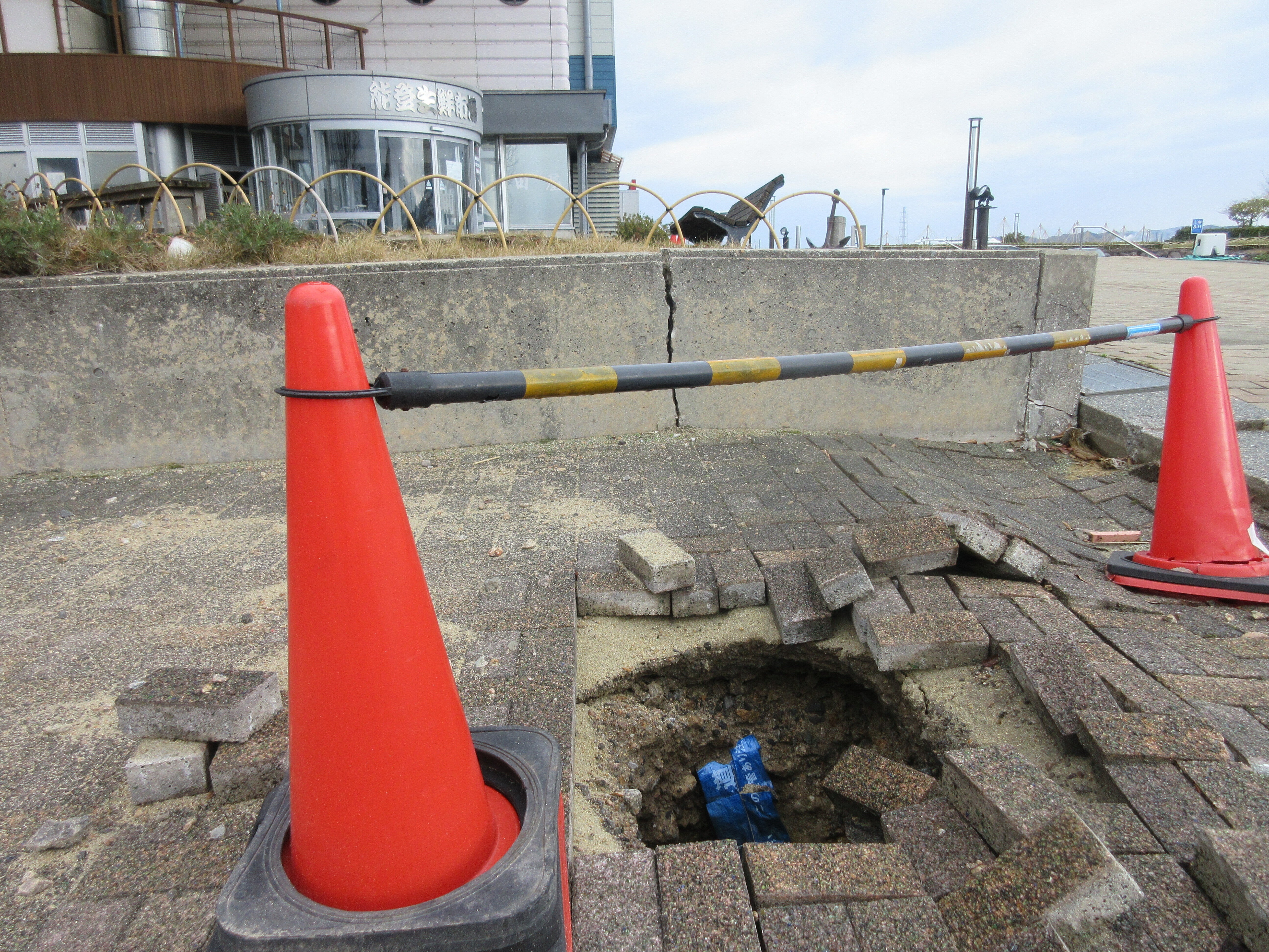 しかしながら、令和6年1月1日16時10分に発生した能登半島地震で、能登食祭市場がある石川県七尾市も震度6強と大きく揺れました。発生当日は休館日だったため人的被害はありませんでしたが、路面の液状化や、館内通路の断裂、配管の損壊など施設には多数の損傷が見受けられ、営業再開の見込みが未だに立っておりません。