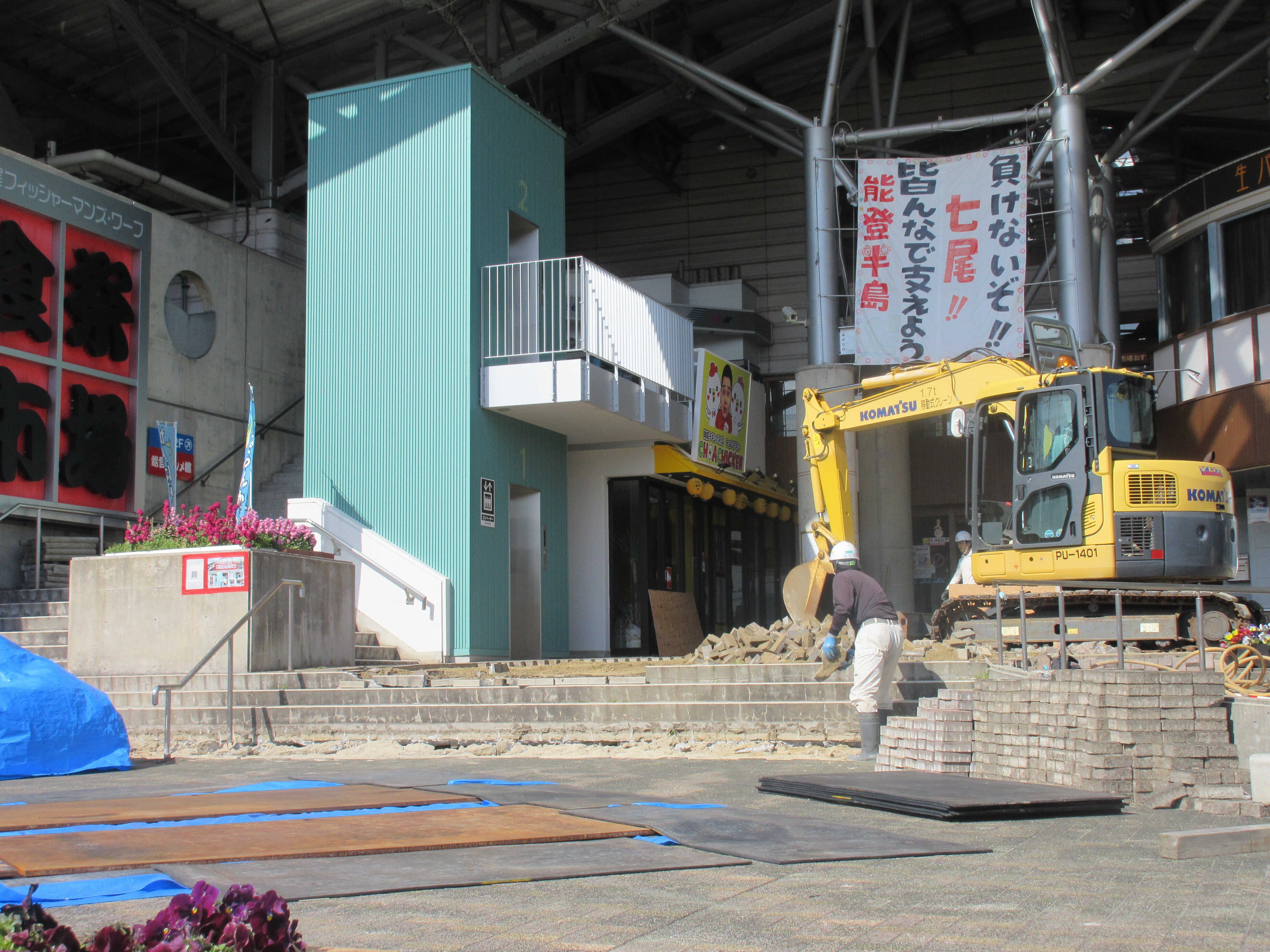 2024/05/01 00:00こちらの活動報告は支援者限定の公開です。能登食祭市場 正面入口 の復旧工事が開始されました!