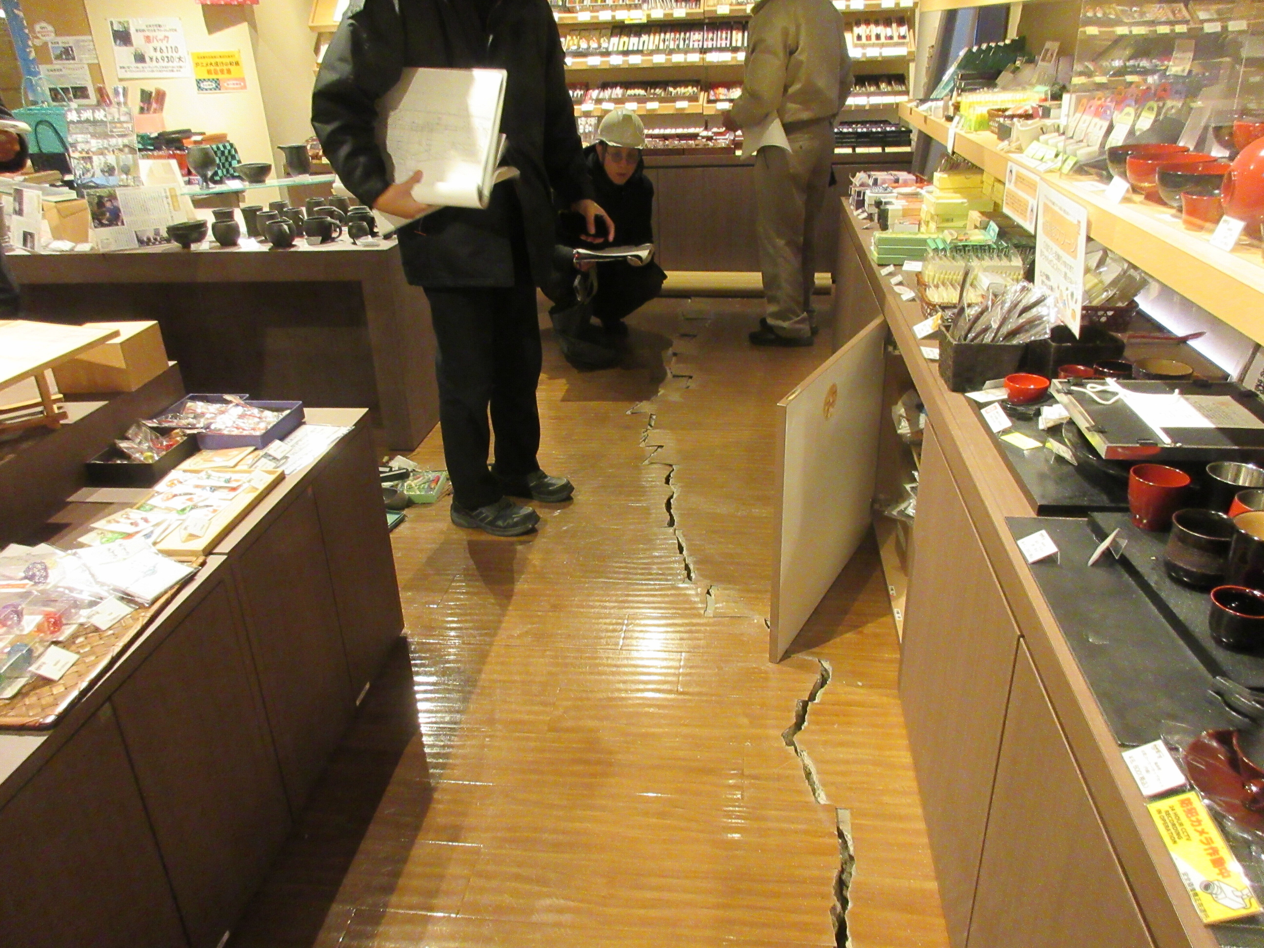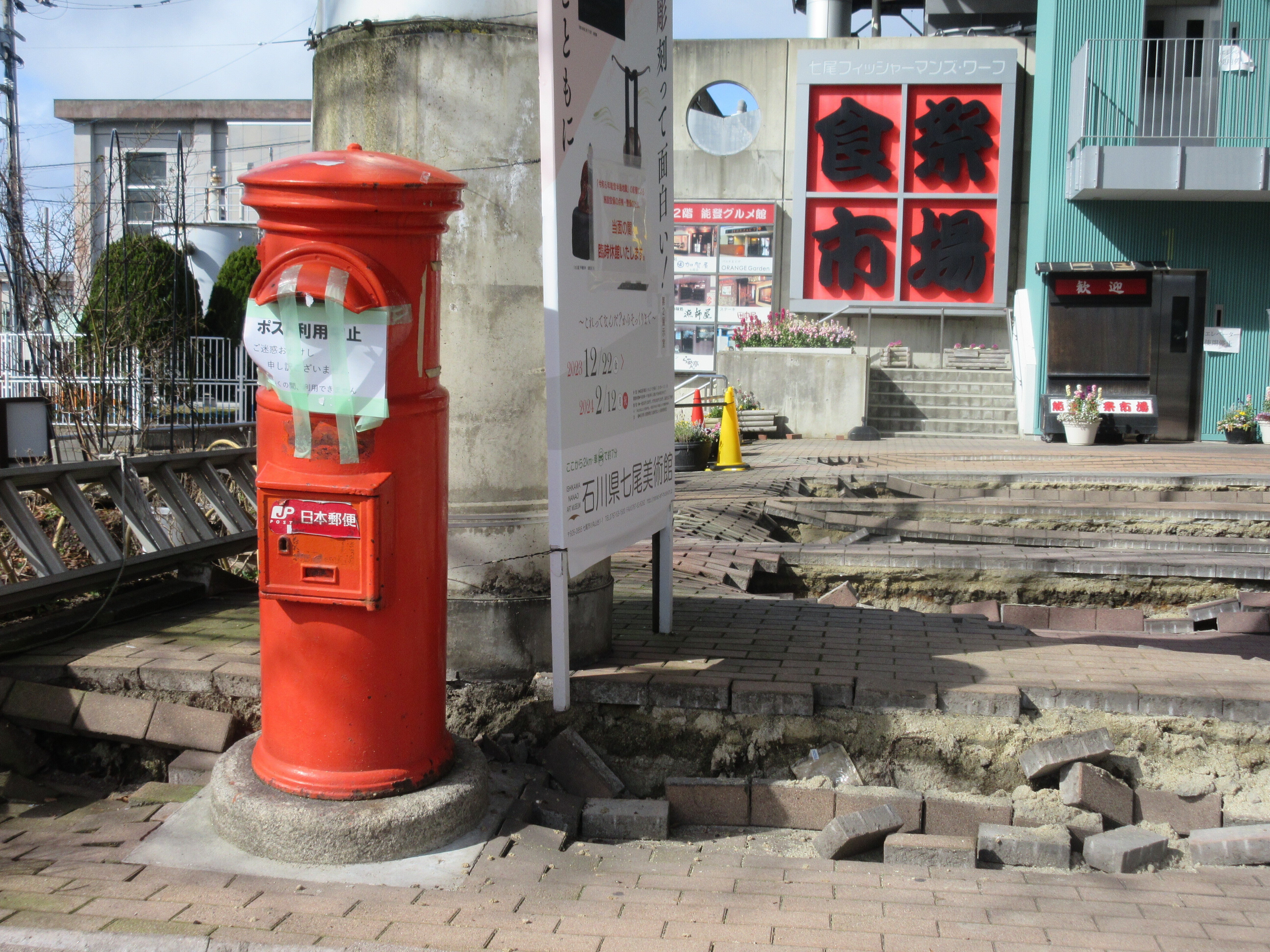 しかしながら、令和6年1月1日16時10分に発生した能登半島地震で、能登食祭市場がある石川県七尾市も震度6強と大きく揺れました。発生当日は休館日だったため人的被害はありませんでしたが、路面の液状化や、館内通路の断裂、配管の損壊など施設には多数の損傷が見受けられ、営業再開の見込みが未だに立っておりません。